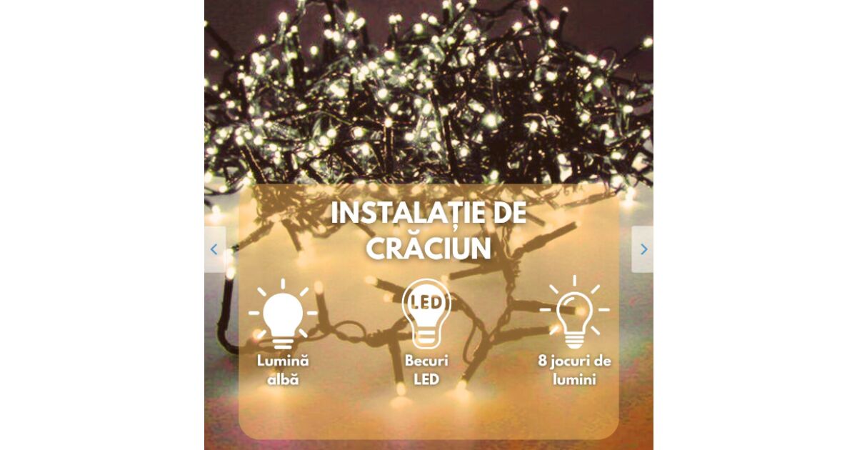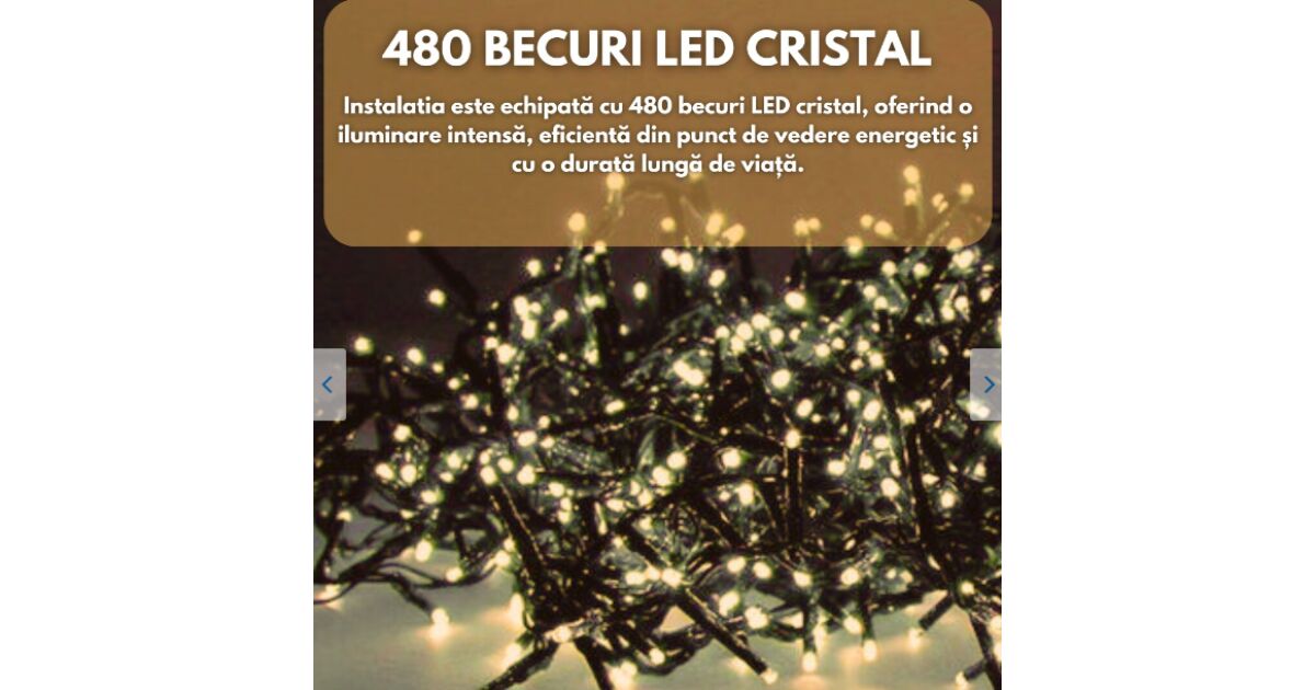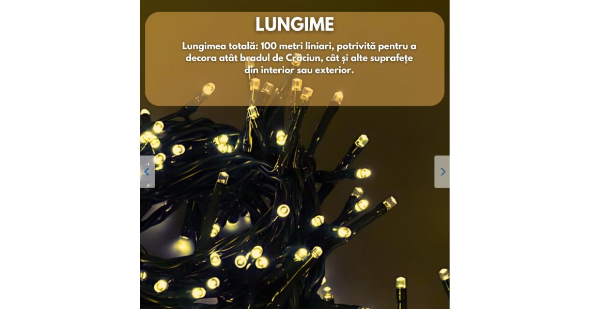 Ragyogó karácsonyi hangulatot varázsolhat otthonába ezzel a 100 méter hosszú LED láncfénnyel! 🎄 480 meleg fehér LED izzó biztosítja a kellemes, ünnepi fényt. 8 különböző világítási mód közül választhat, hogy tökéletesen illeszkedjen a dekorációjához.