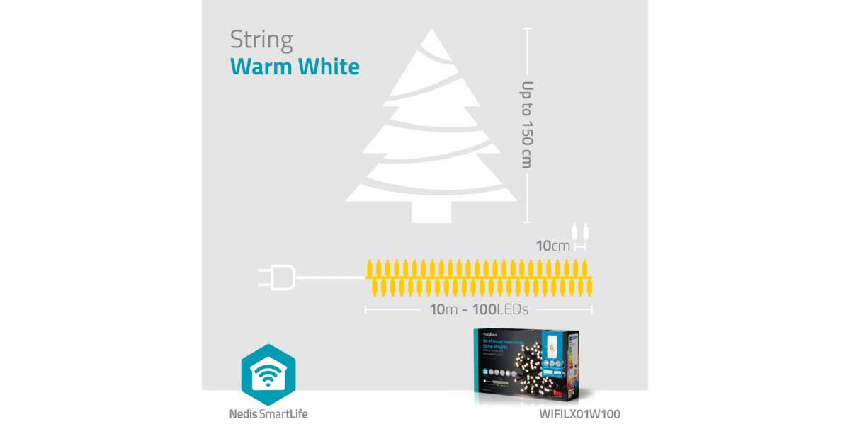 Ezt a terméket így is ismerheted: SmartLife Dekoratív LED | Húr | Wi-Fi | Meleg Fehér | 100 LED's | 10.0 m | Android™ / IOS