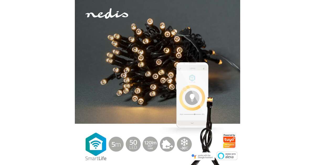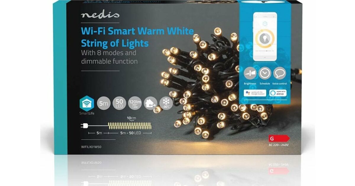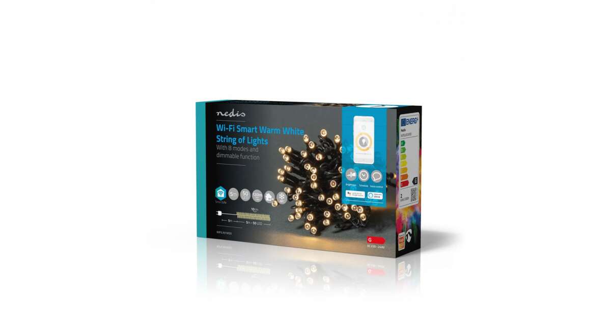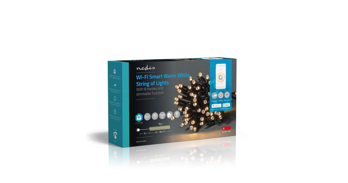 SmartLife Dekoratív LED | Húr | Wi-Fi | Meleg Fehér | 50 db. LED | 5.00 m | Android™ / IOS leírása