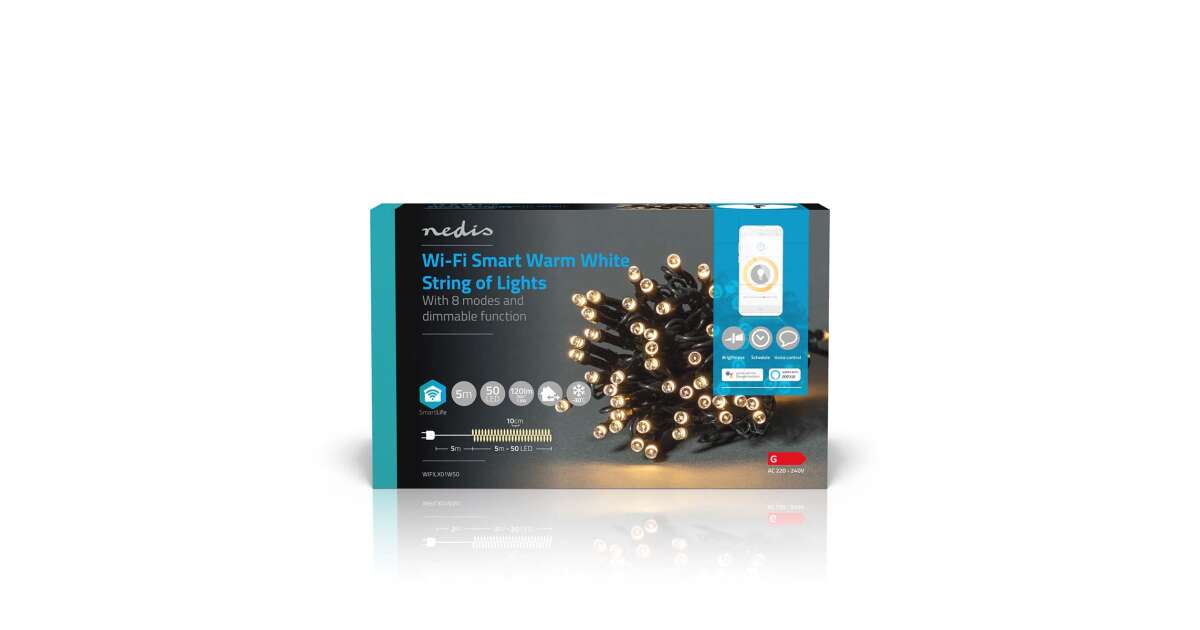 Díszítsd otthonodat ezzel az 5 méteres, 50 meleg fehér LED-del ellátott intelligens fényfüzérrel! A SmartLife applikáció segítségével könnyedén vezérelheted a fényeket, akár távolról is. 📱