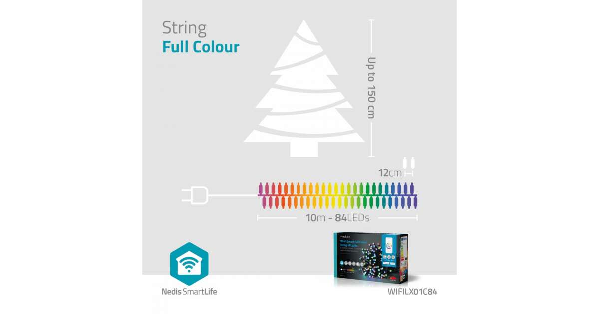Ez a 10 méteres, 84 LED-es okos fényfüzér tökéletes választás otthonod hangulatának fokozására. A Wi-Fi kapcsolaton keresztül, a Nedis SmartLife applikációval könnyedén vezérelheted a fényeket, akár távolról is. Válassz a 7 előre beállított szín közül, vagy állítsd be a saját egyedi színeidet! 8 különböző villogási mód is a rendelkezésedre áll.
