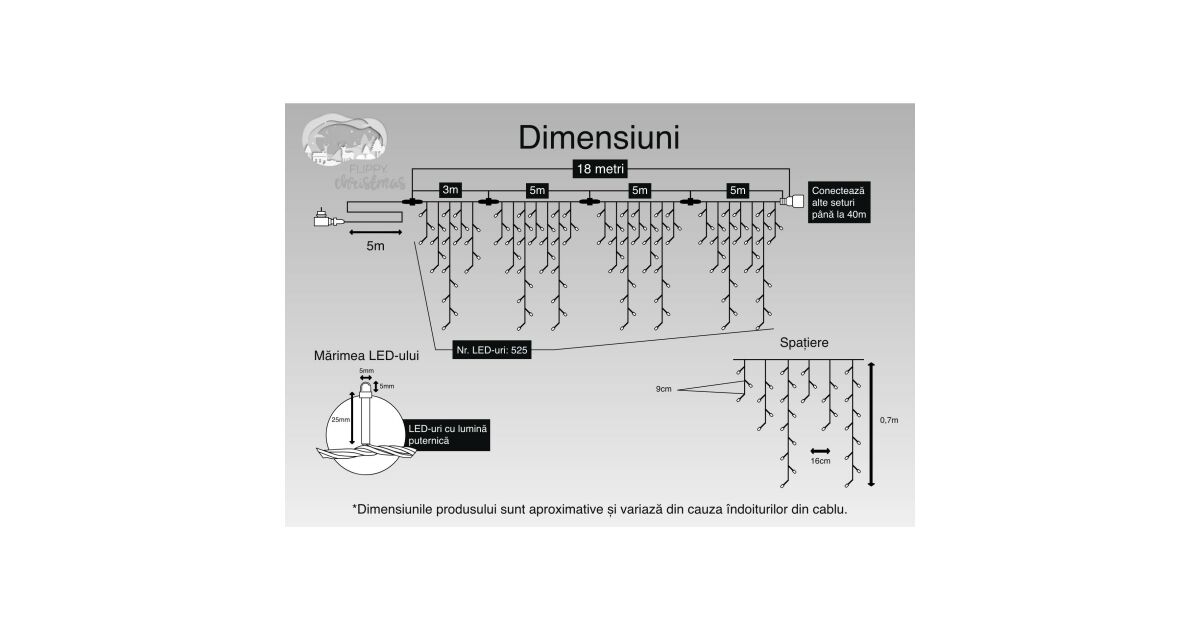Varázsolj meghitt, ünnepi hangulatot otthonodba ezzel a 18 méter hosszú, 525 LED-es jégcsap fényfüzérrel! Tökéletes választás beltéri és kültéri dekorációhoz egyaránt.