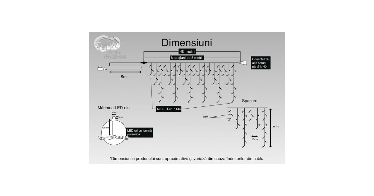 Turturi karácsonyi Fényfüzér, IP44, 40 m, 1144 LED, Kék, 8 fényjáték, Transzformátor 31 V, Összeköthető, Beltéri/Kültéri, Hosszabbító 5 m leírása