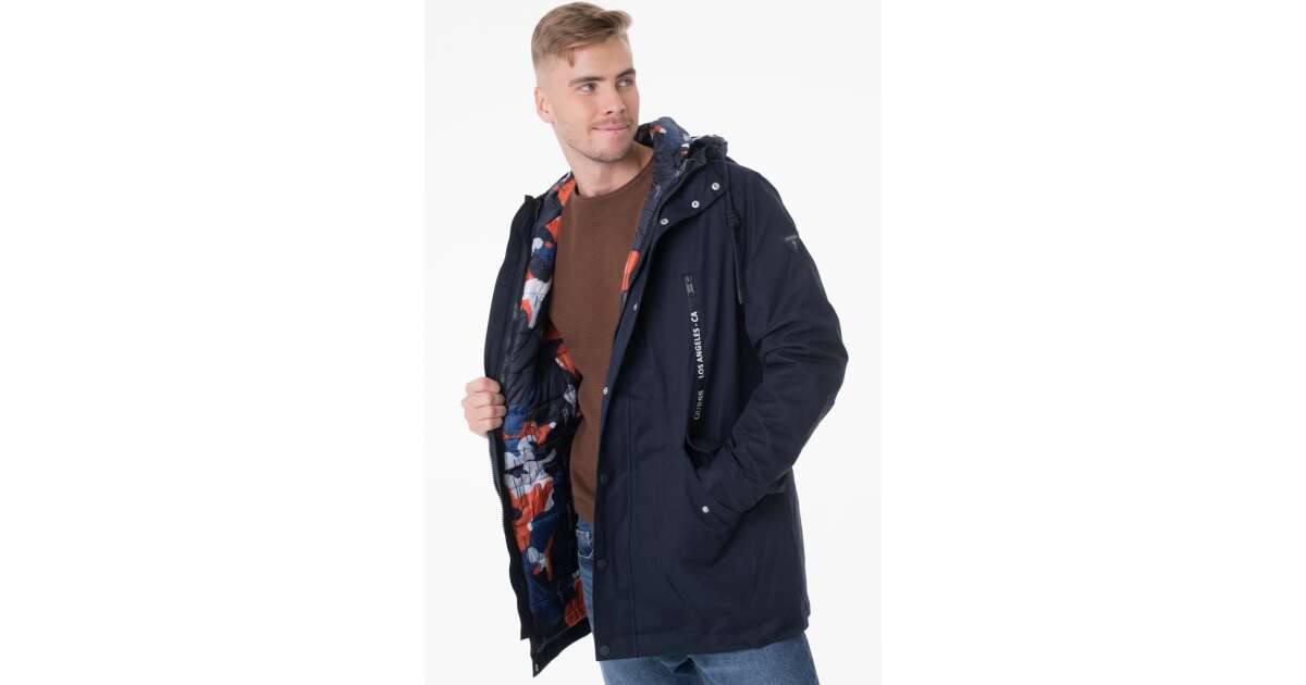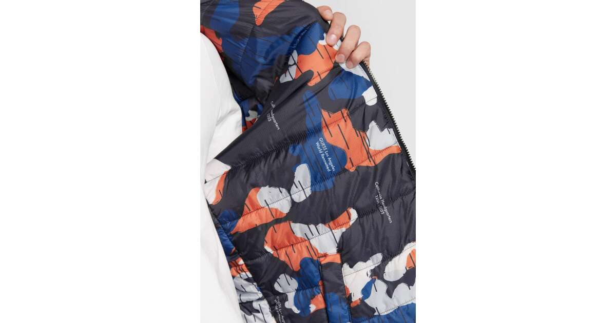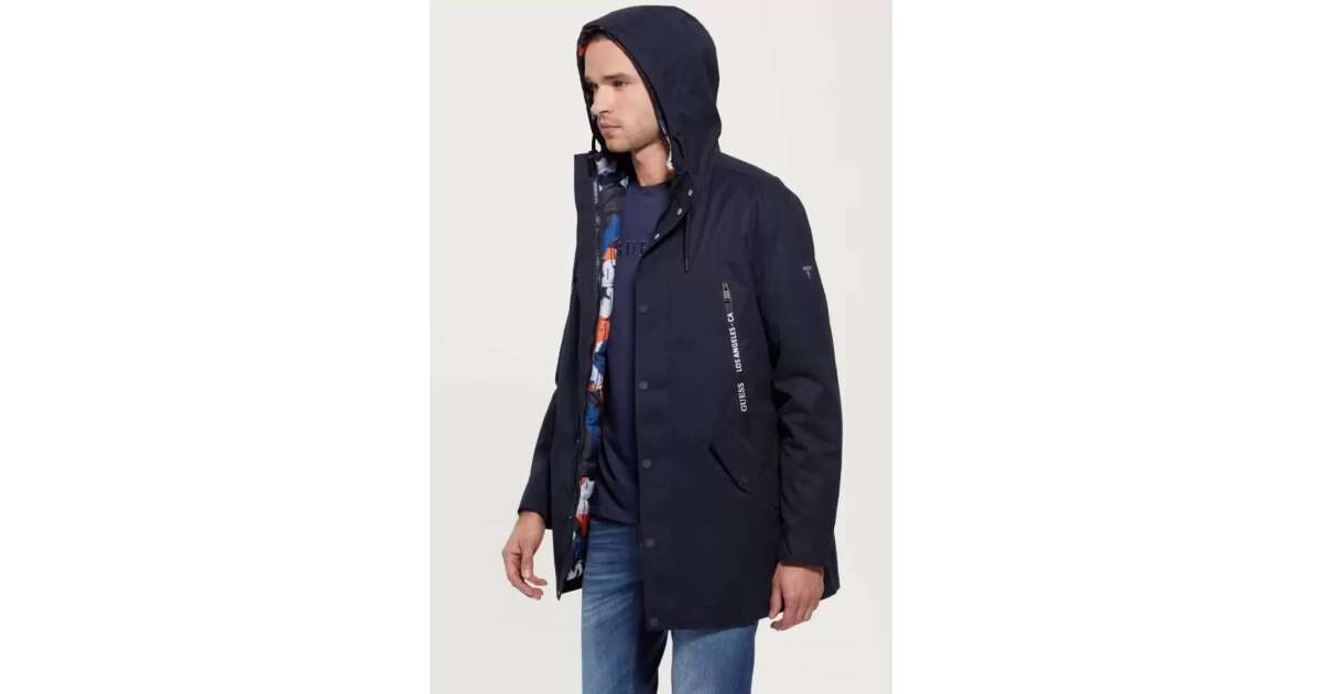 Ez a Guess márkájú, 2 az 1-ben kabát tökéletes választás a hideg téli napokra. Két különböző oldalával (sima sötétkék és mintás) kétféle stílusban viselhető, így mindig tökéletesen illeszkedik az öltözékedhez. A könnyű, de meleg bélés biztosítja a kényelmet, míg a praktikus zsebek és a kapucni extra védelmet nyújtanak.