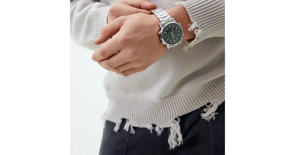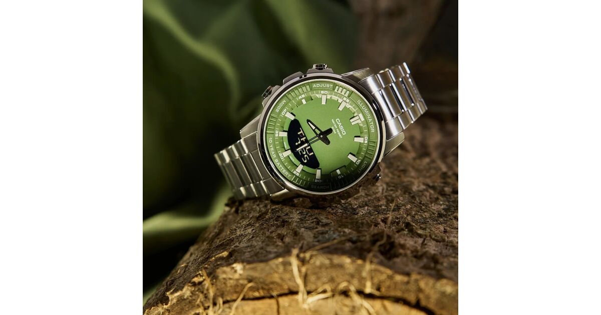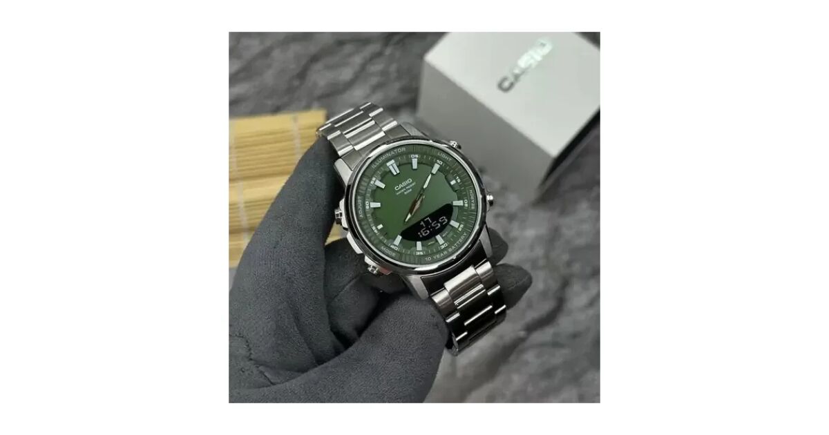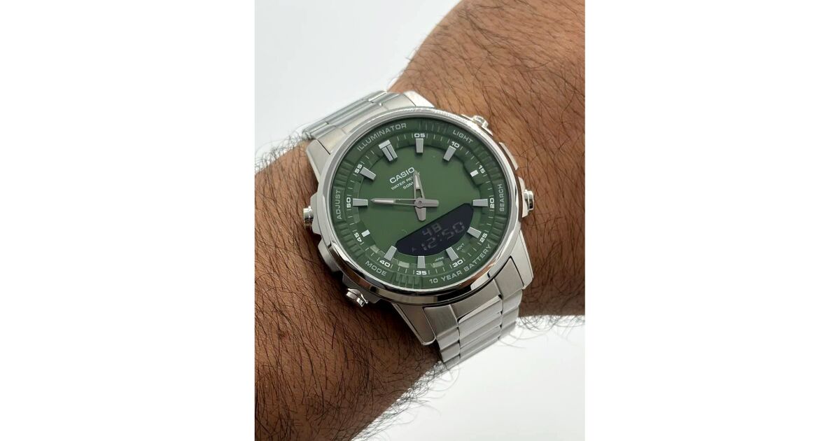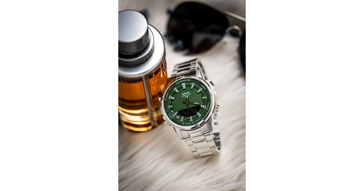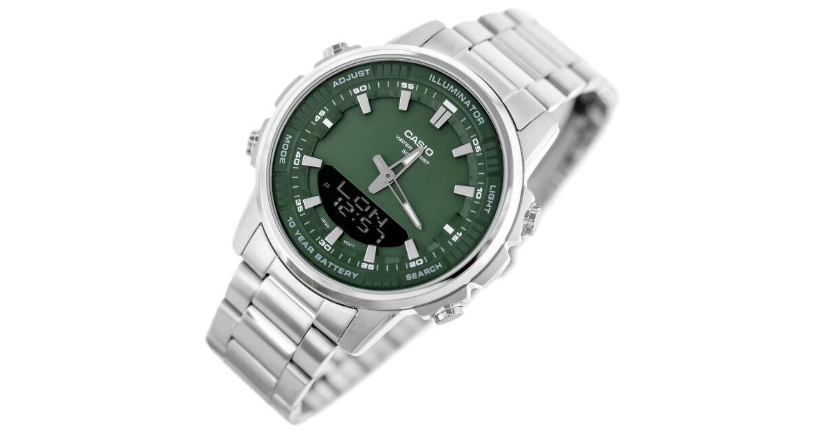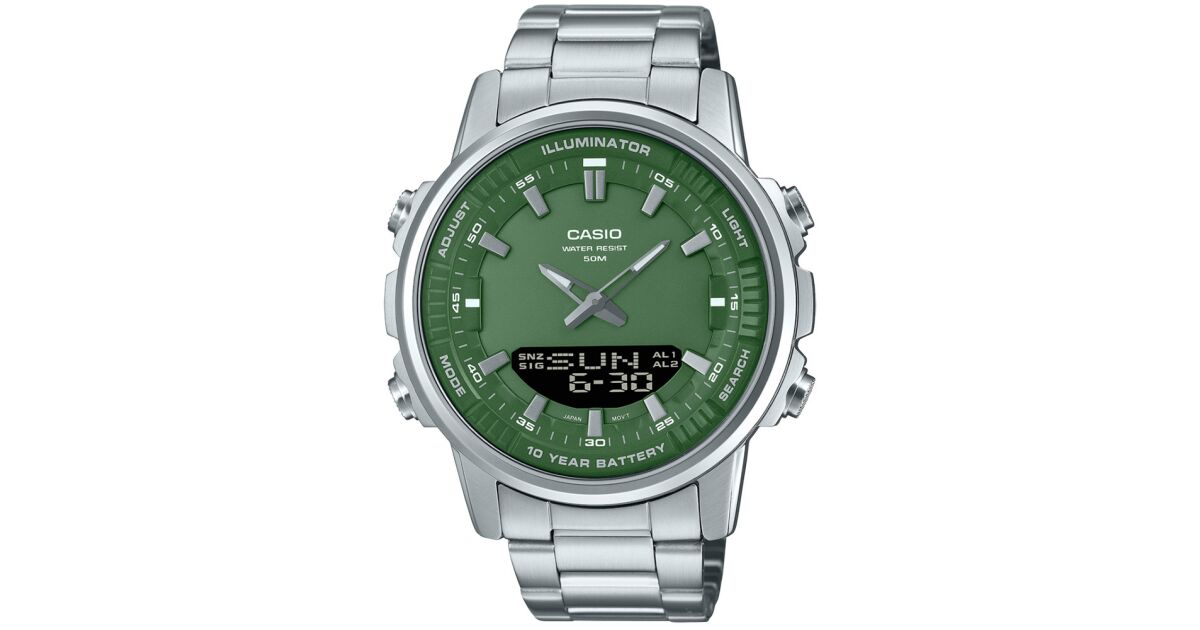 Ezt a terméket így is ismerheted: Casio AMW-880D-3A férfi karóra, zöld számlap, acél szíj, WR50, 47 mm