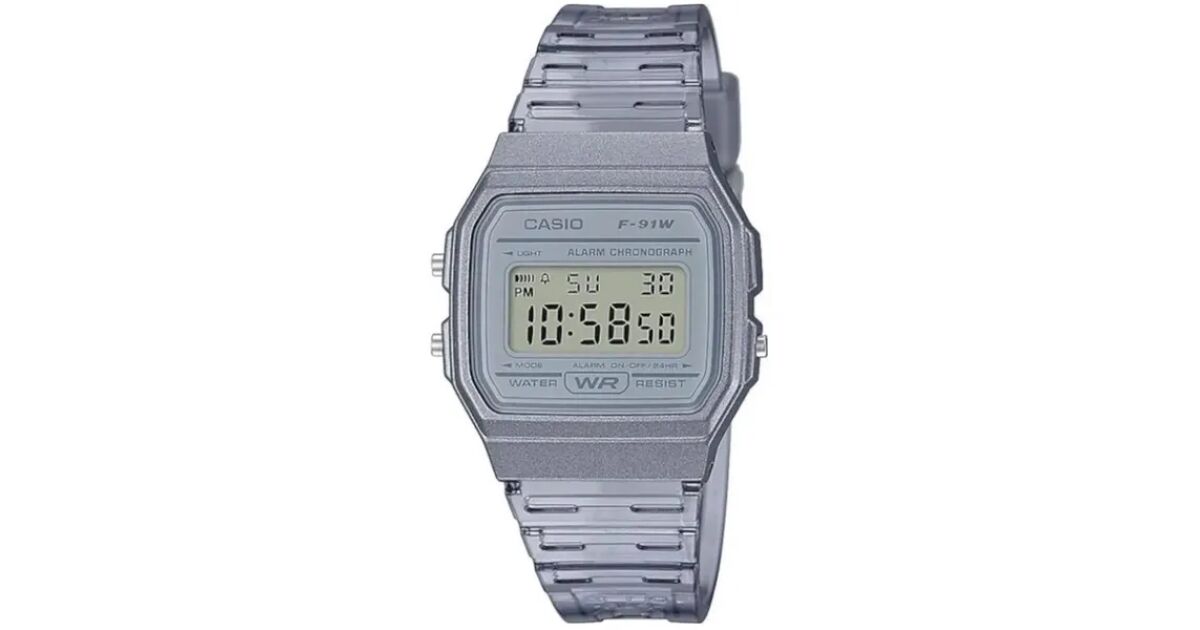 Ez a Casio F-91WS-8DF karóra a 90-es évek ikonikus designját ötvözi a mai kor elvárásaival. Az áttetsző szürke szín és a könnyű viselet teszi tökéletes választássá mindennapi használatra.