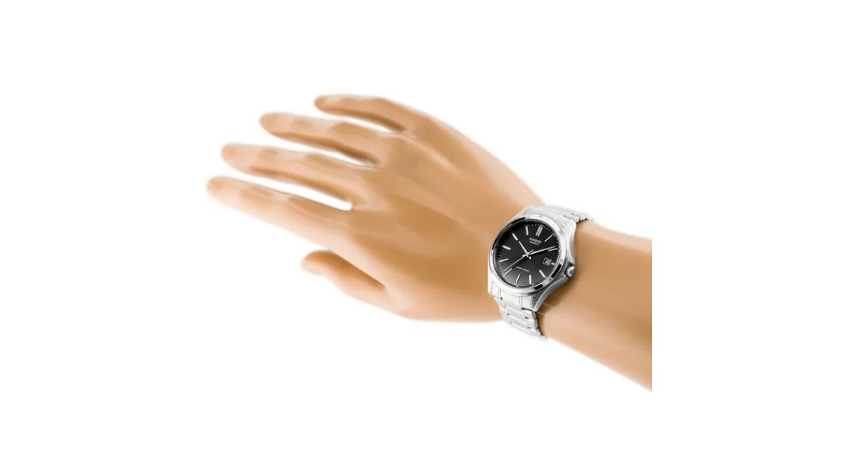 Ezt a terméket így is ismerheted: Casio MTP-1183A-1A férfi karóra – ezüst acél, fekete számlap, dátum, WR30