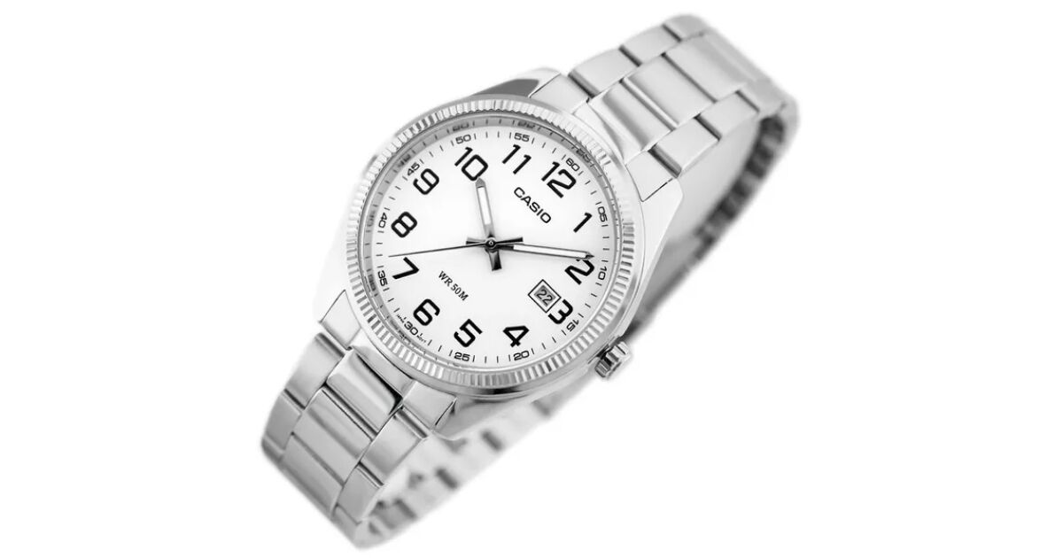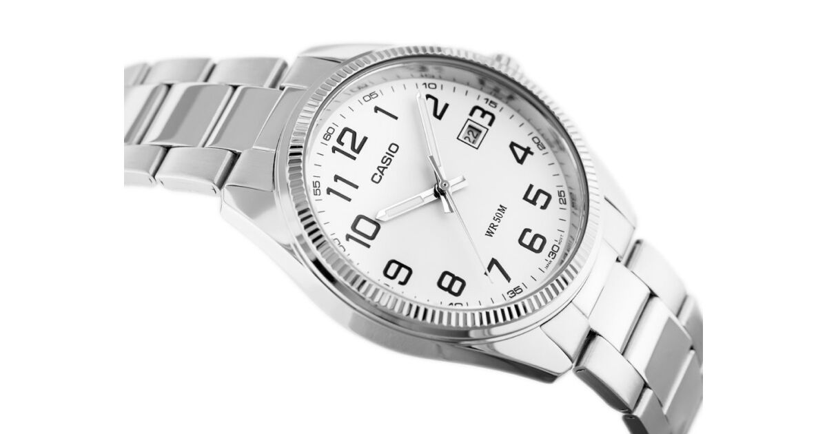 Casio MTP-1302PD-7B férfi karóra, acél szíj, WR50, dátumkijelző leírása