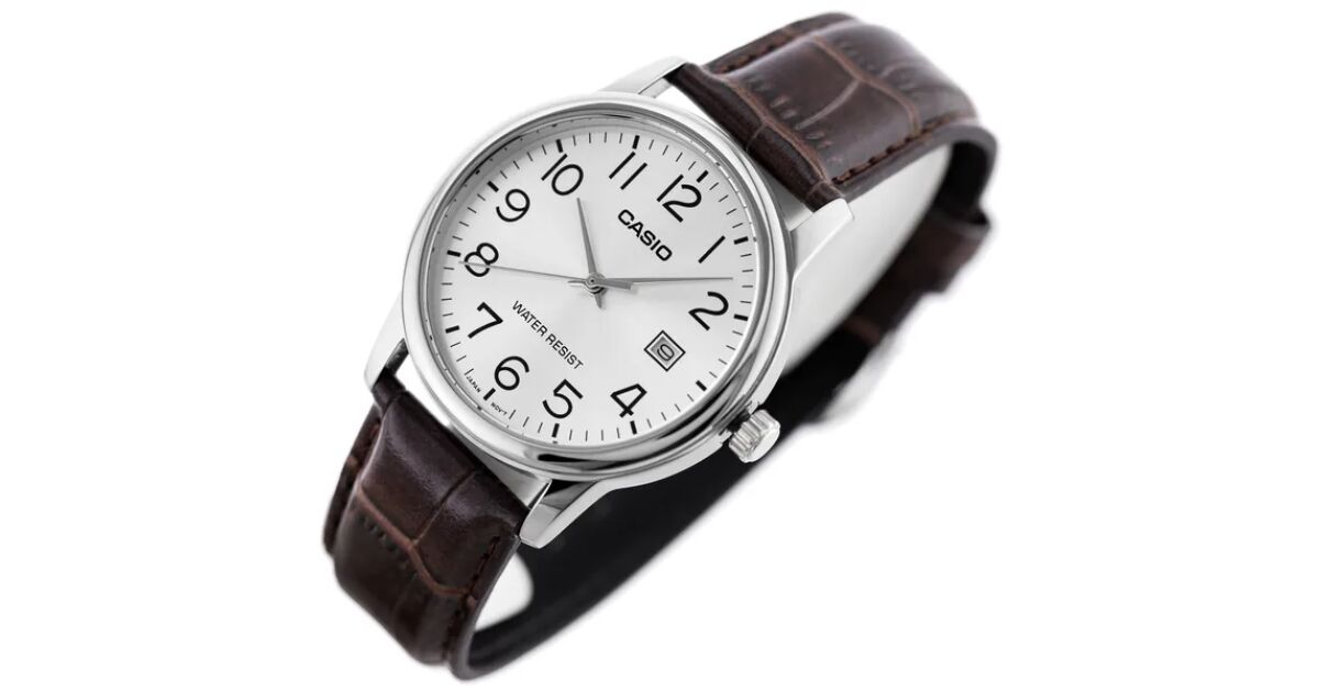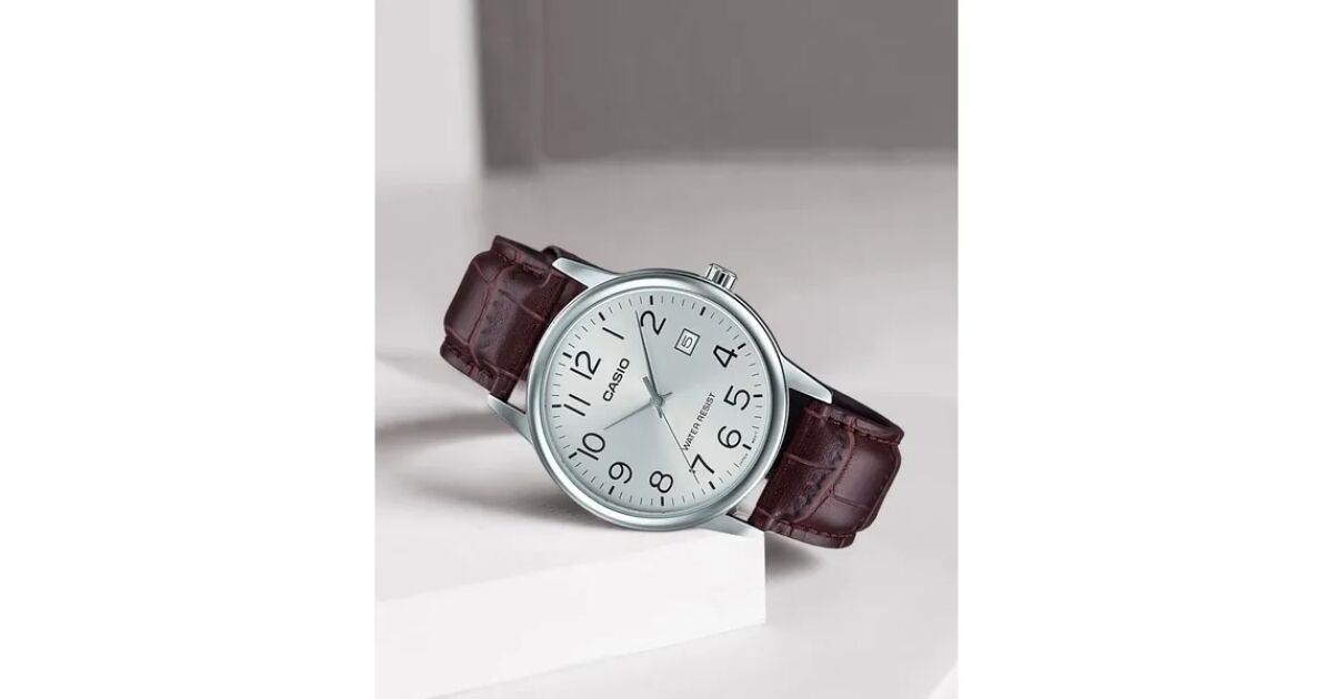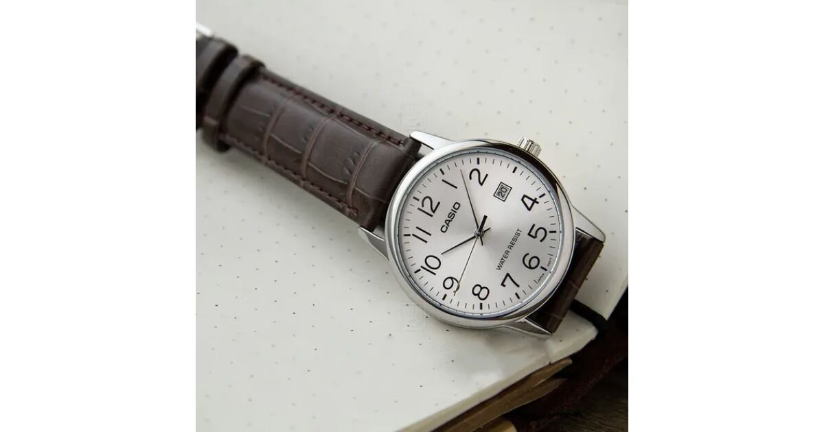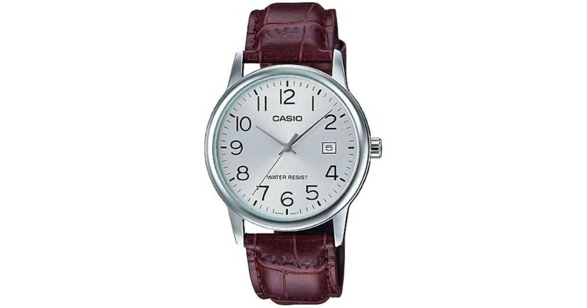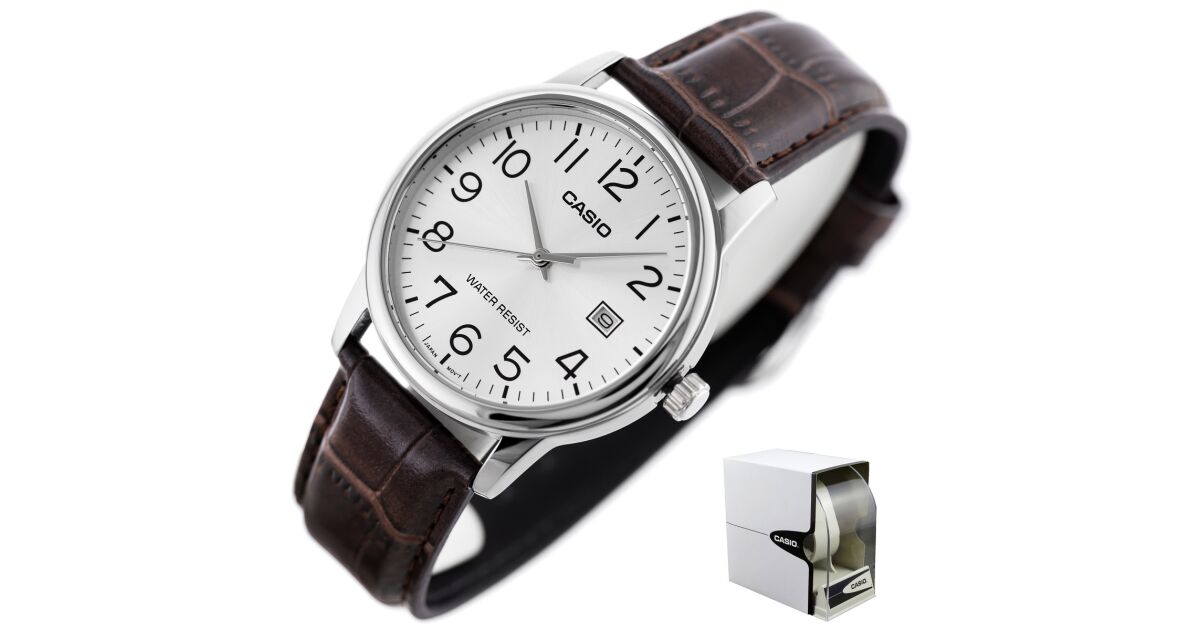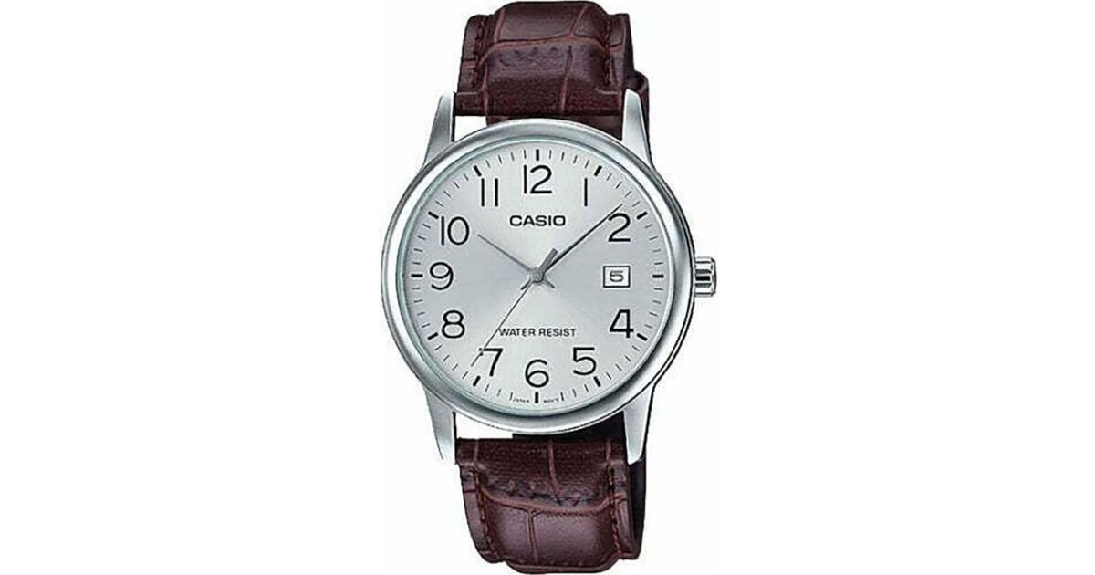 Ezt a terméket így is ismerheted: Casio MTP-V002L-7B2 férfi karóra barna bőrszíjjal ezüst számlappal 44mm WR30