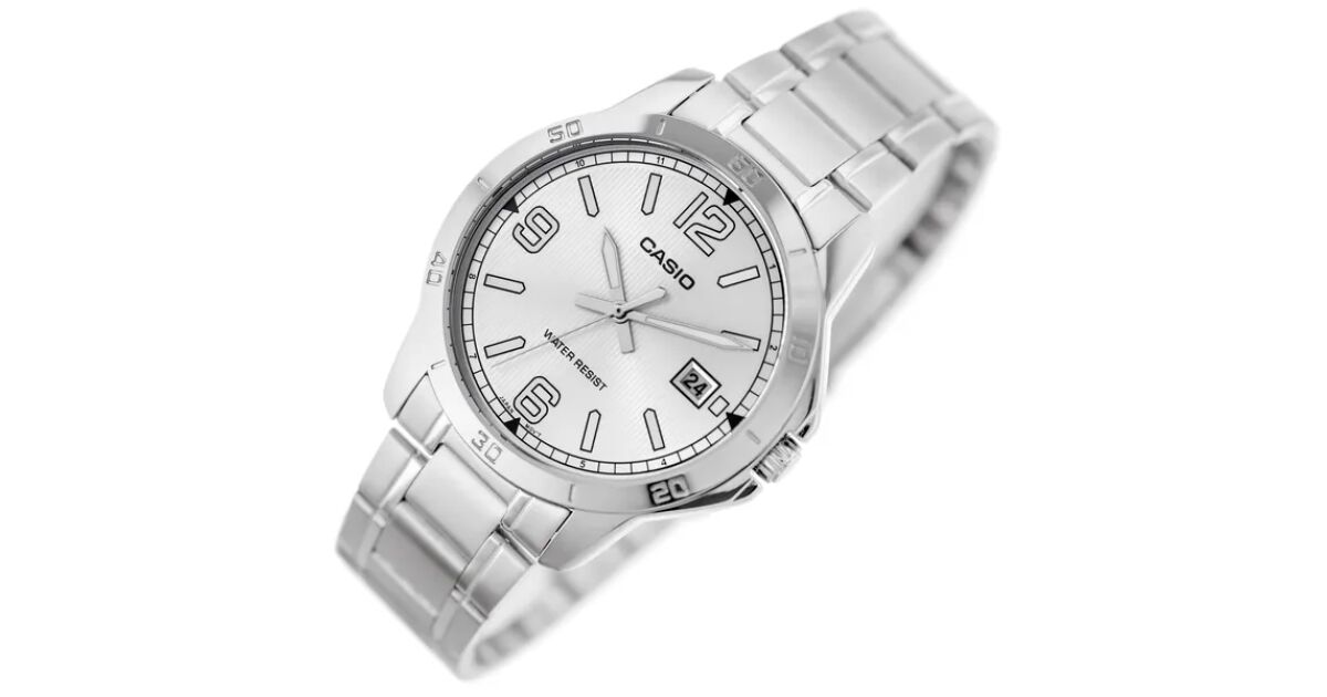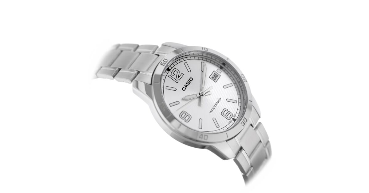 Casio MTP-V004D-7B2 férfi karóra ezüst nemesacél, dátum, WR30 leírása