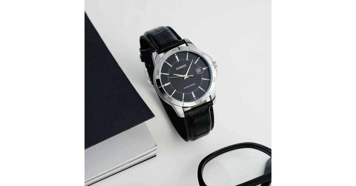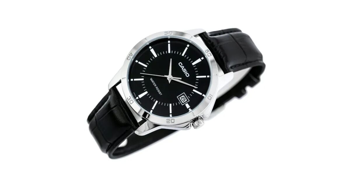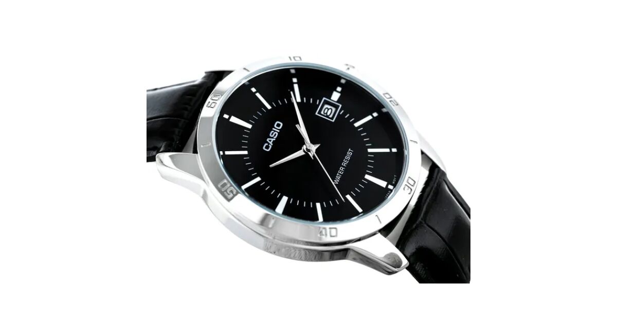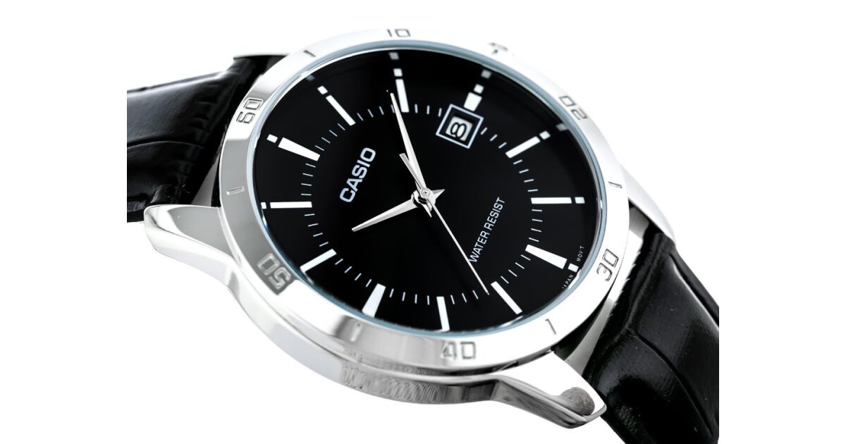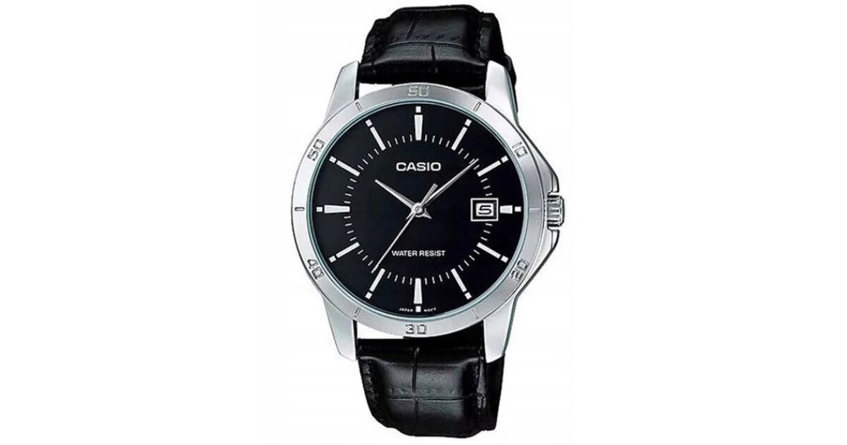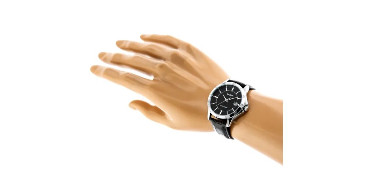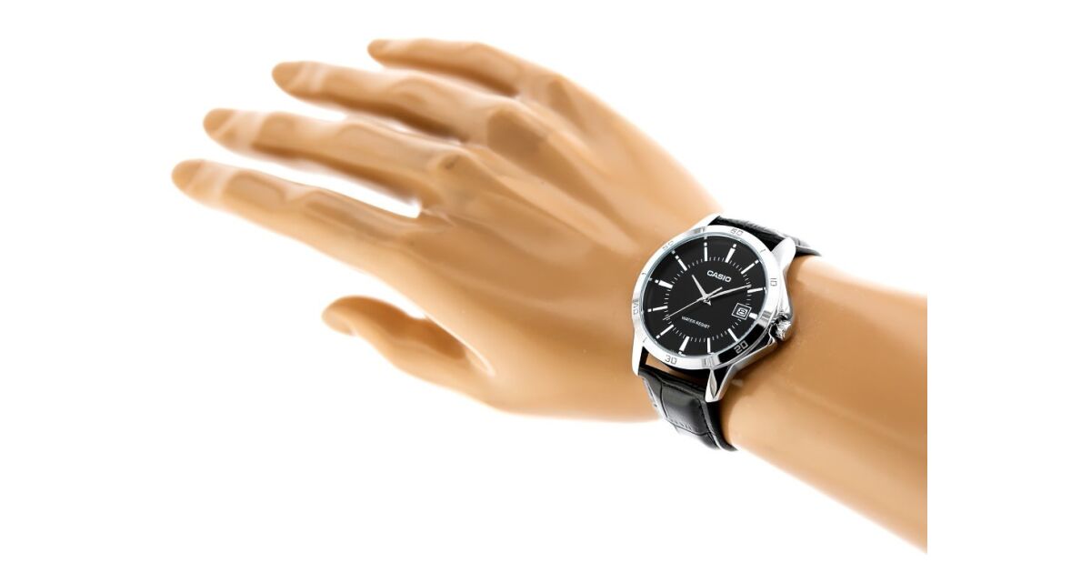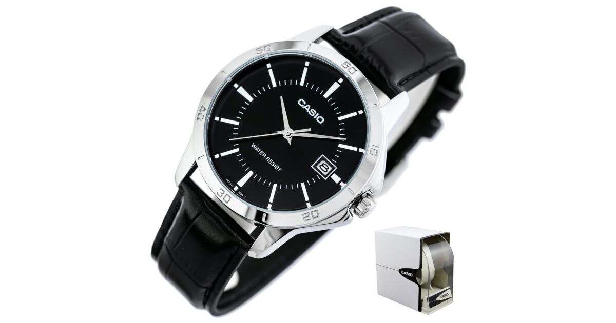 Casio MTP-V004L-1A férfi karóra, fekete számlap, bőrszíj, WR30 leírása