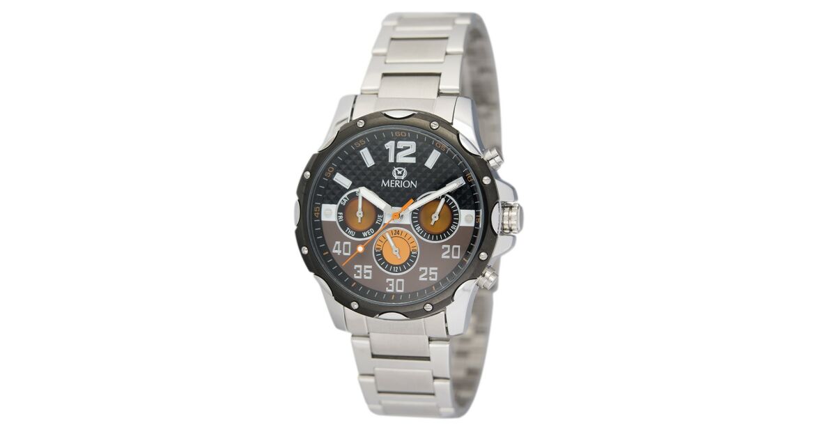 Ezt a terméket így is ismerheted: Merion férfi karóra, bicolor színű fém tok, ezüst színű nemesacél csat, fekete/barna színű számlap, ásványüveg, multifunkciós quartz szerkezet, cseppmentesség