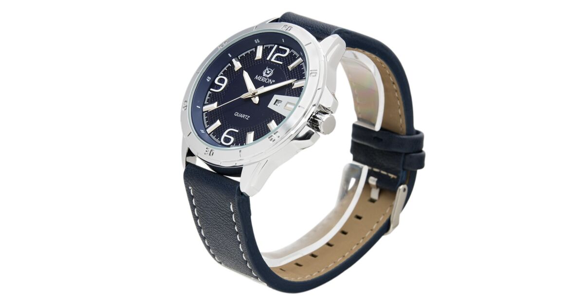 Merion férfi karóra, ezüst színű fém tok, kék színű szíj, kék színű számlap, ásványüveg, quartz szerkezet, cseppmentesség vélemények