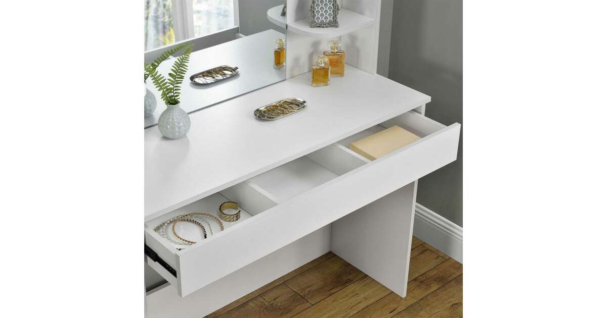 - 🗄️ Széles fiók osztókkal: Rendezd el sminkjeidet és ékszereidet könnyedén.