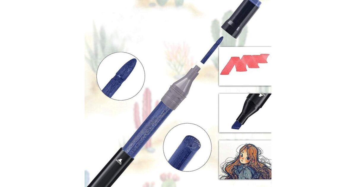 - Két vég: Egy finom hegy a precíz részletekhez és egy széles hegy a gyors és egyenletes színezéshez.