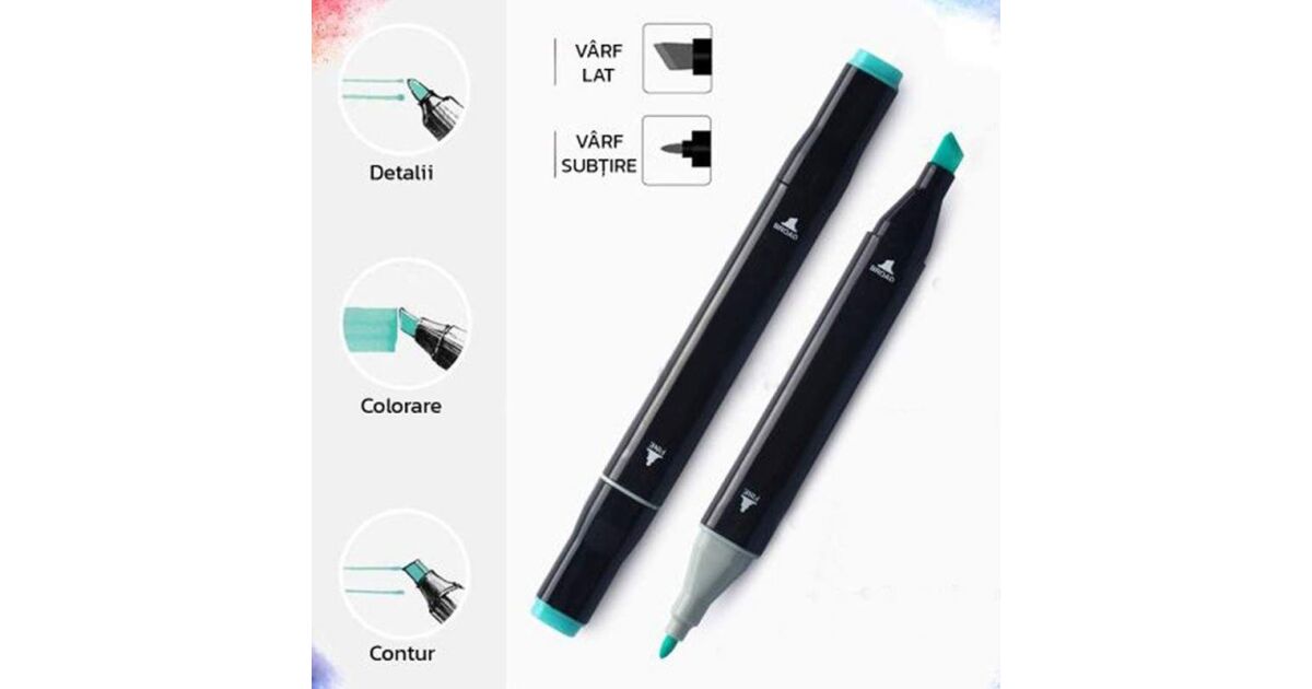 Kétoldalas alkoholjelölő kétféle heggyel (széles és vékony) - ideális színezéshez és kontúrozáshoz;