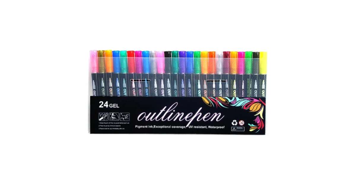 Ezt a terméket így is ismerheted: Filctoll készlet ,ezüst színű vonalak színes kontúrral , íráshoz, rajzoláshoz, kiemeléshez 24 db-os