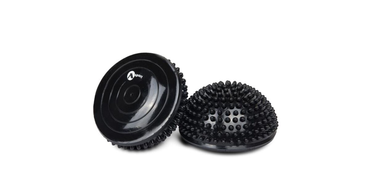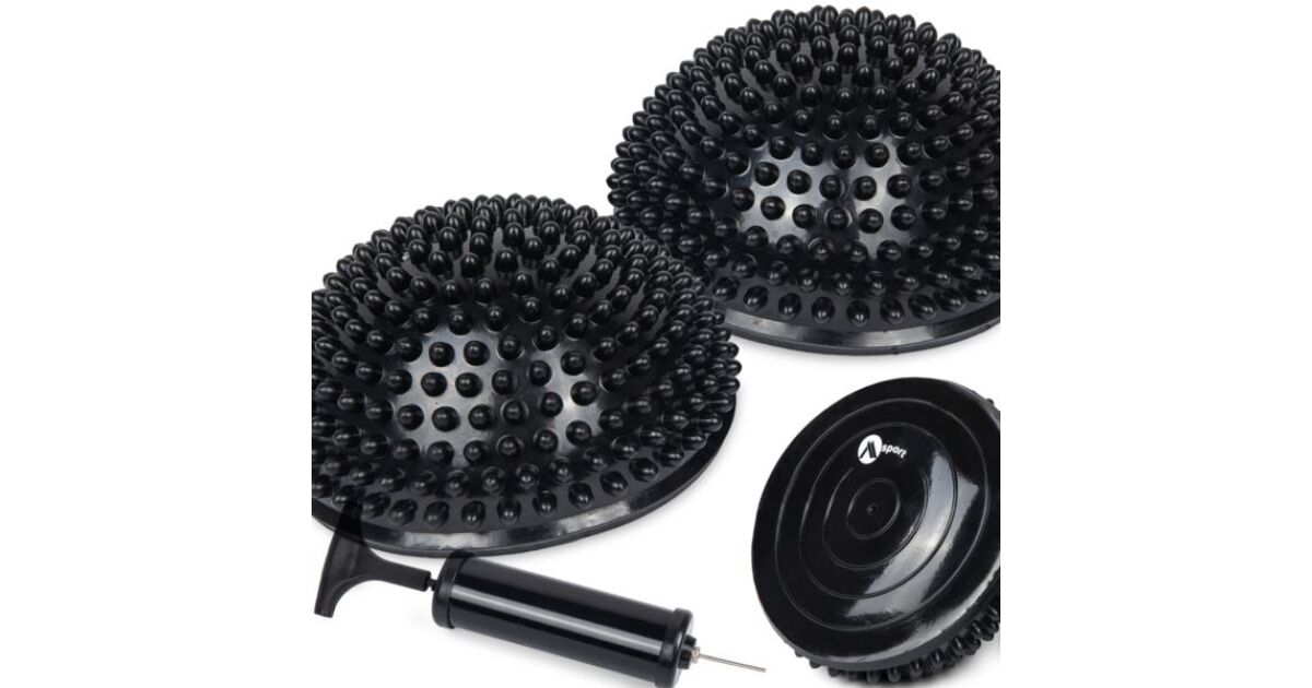 Ez a két darabos, fekete egyensúlyozó félteke tökéletes eszköz az egyensúly fejlesztésére, a koordináció javítására és a rehabilitáció támogatására. A gömbölyű felület és a kis tüskék stimulálják a talp reflexpontjait, serkentik a vérkeringést és javítják az érzékszervi integrációt.