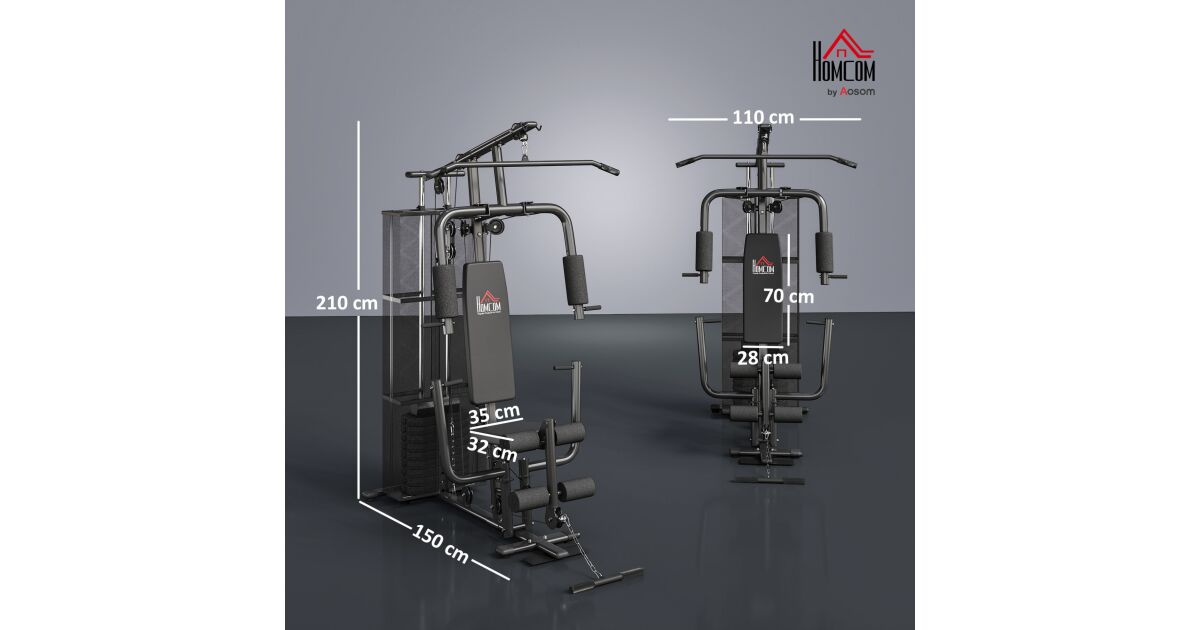 HOMCOM Multifunkcionális Fitneszközpont Edzőterembe és Otthonra, Acél 150x110x210cm Fekete leírása