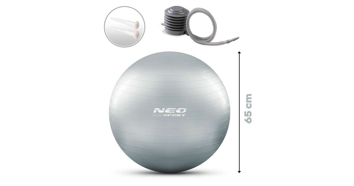 Ezt a terméket így is ismerheted: NeoSport Gimnasztikai Fitnesz labda, pumpával, 65 cm - Ezüst