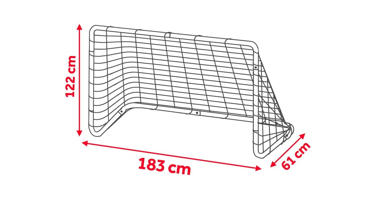 - Nagy méret: 183 x 122 x 61 cm – Ideális a nagyobb gyerekeknek és a komolyabb meccsekhez