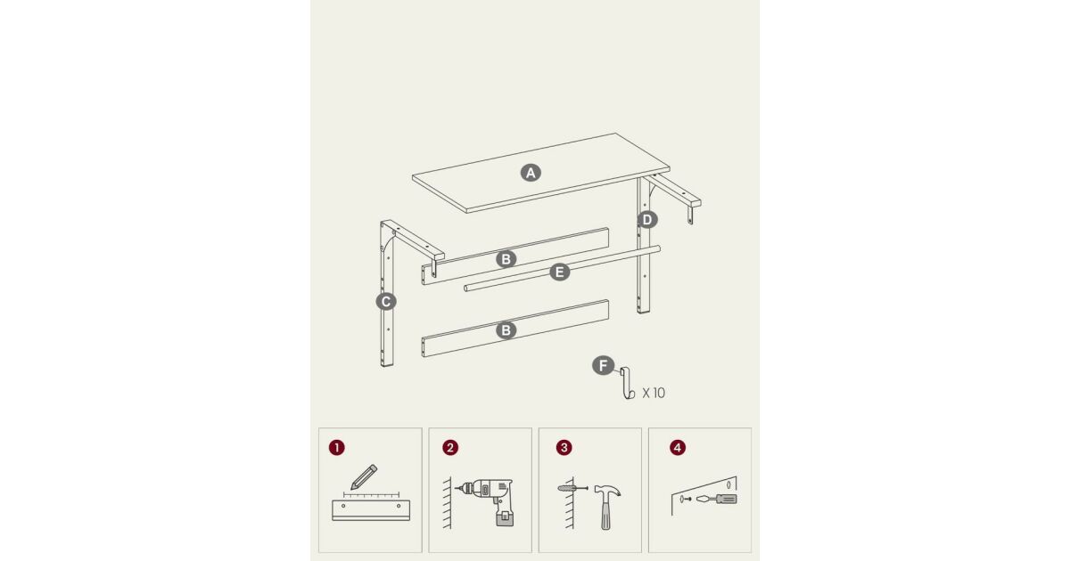 - Nagy teherbírás: A polc 20 kg-ot, a kampók egyenként 5 kg-ot, a rúd pedig 15 kg-ot bír el (összesen max. 45 kg). 💪