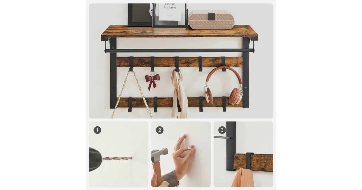 - Többfunkciós: Polc, kampók és ruhatartó rúd egyben! ✅