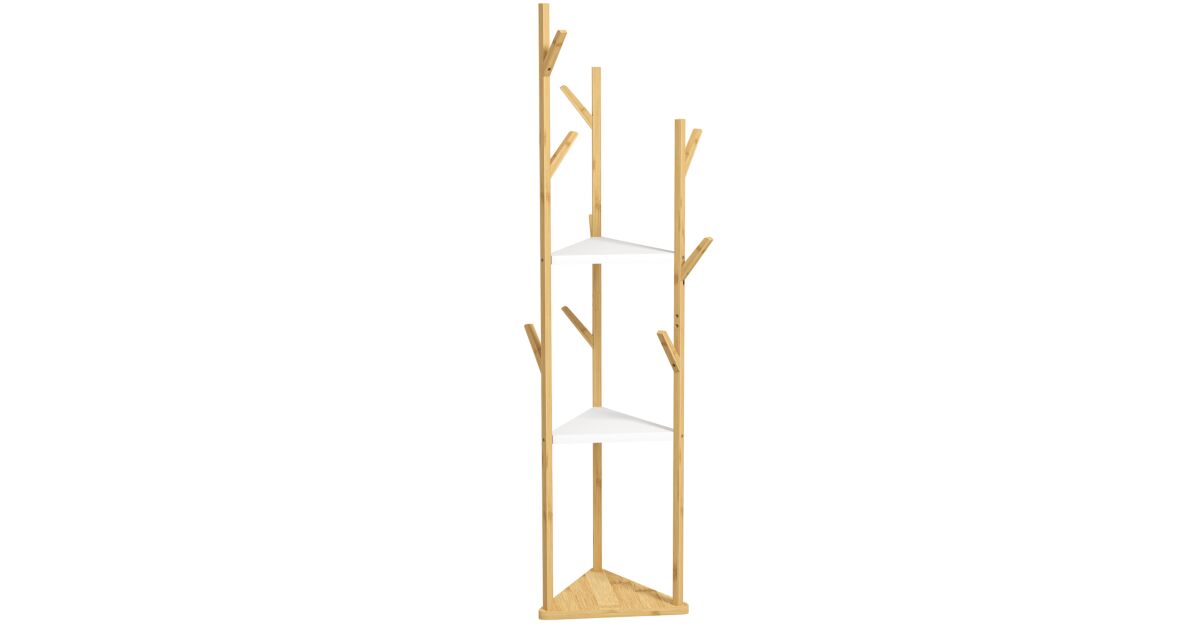 HOMCOM Bambusz Padló Akasztó Fa Formában 8 Akasztóval és 3 Polccal, 45x45x170 cm, Fehér leírása