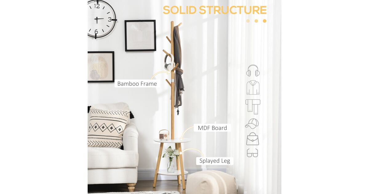 Ezt a terméket így is ismerheted: Homcom kabáttartó asztallal – MDF, bambusz és alumínium 171 cm