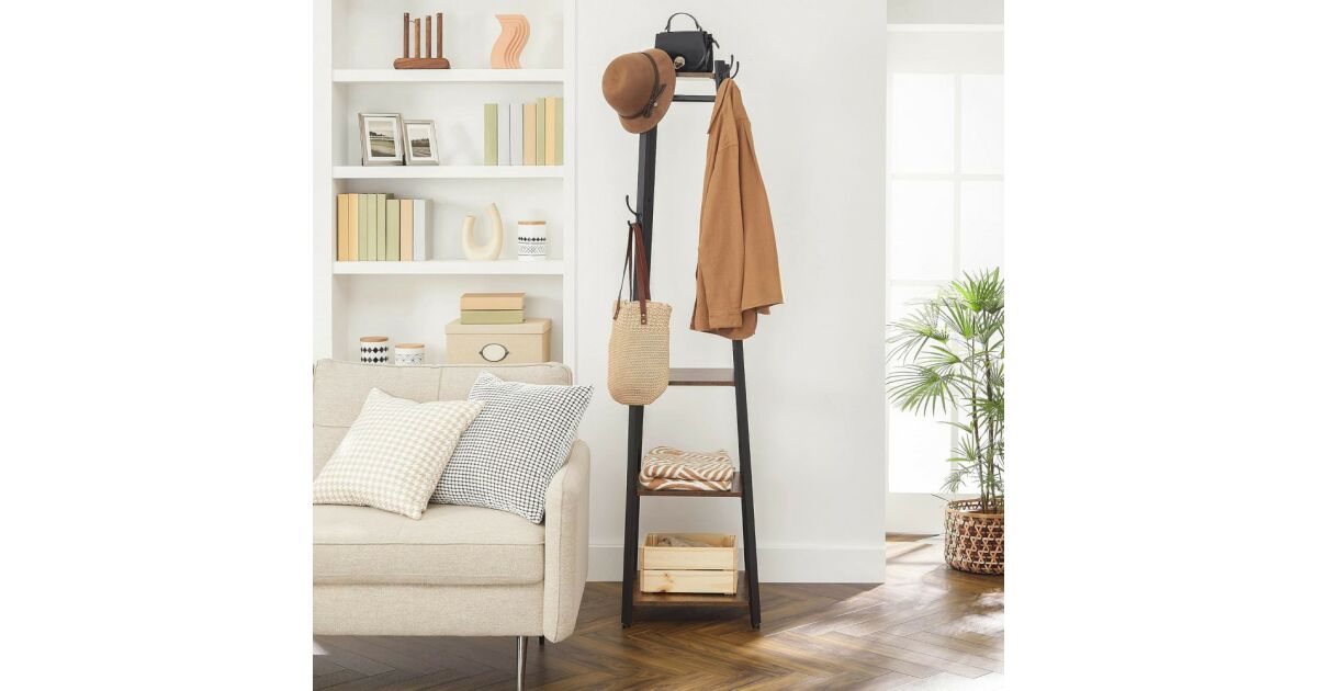 Rusztikus stílusú kabáttartó 3 polccal: Tökéletes helytakarékos megoldás a ruházat tárolására 🧥