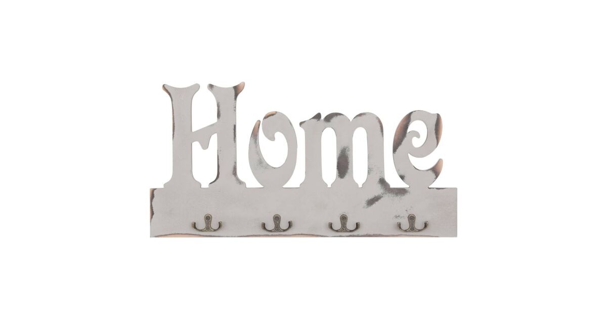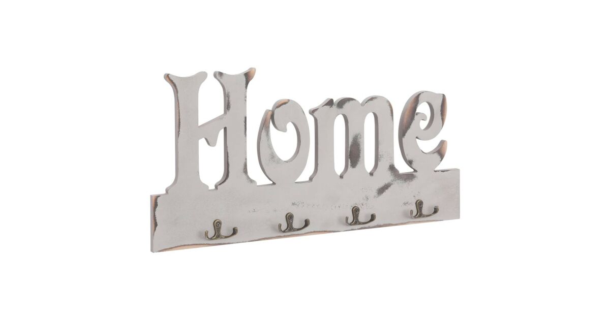 Ez a gyönyörű fali fogas nem csak praktikus, de otthonának hangulatos dísze is lehet! A "Home" felirattal díszített, fehér MDF fogas 4 rusztikus réz akasztóval rendelkezik, így könnyedén felakaszthatja kabátjait, kulcsait, táskáját vagy akár törölközőit is.