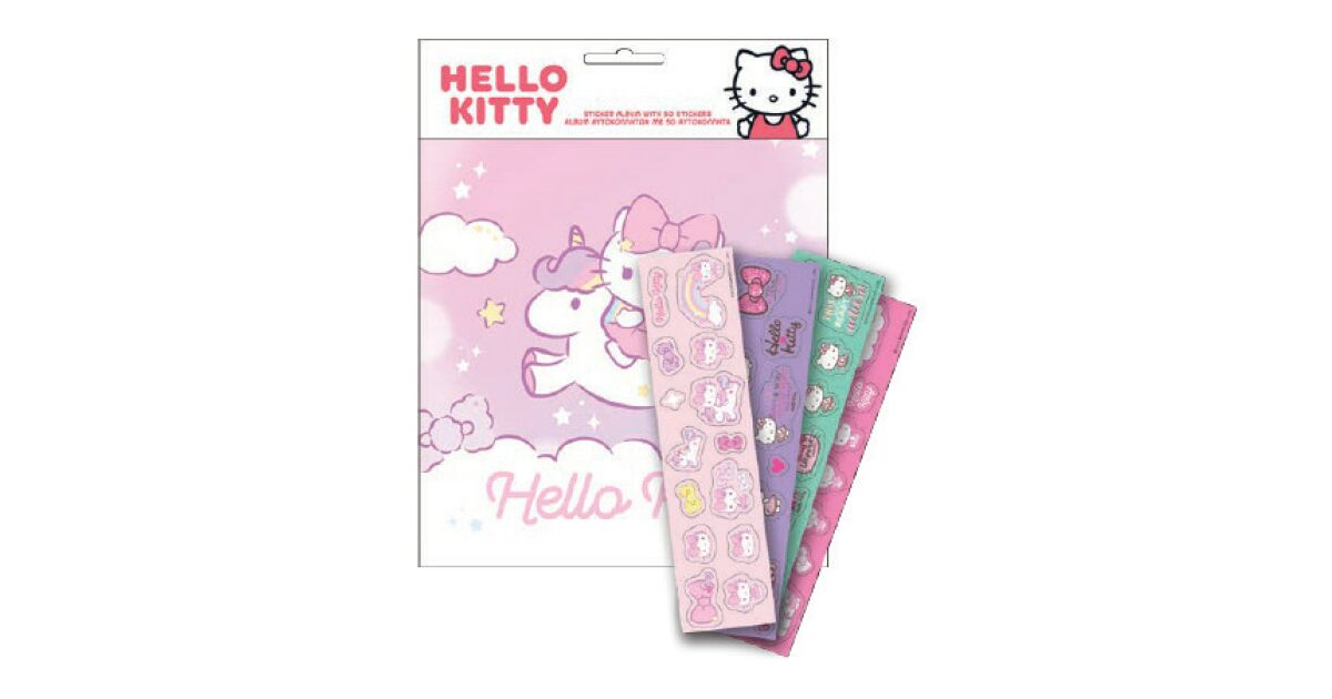 Ez a gyönyörű Hello Kitty matricatartó album tökéletes ajándék minden Hello Kitty rajongónak! 50 db elbűvölő matricával érkezik, amelyekkel feldíszítheted a füzetet. A matricák között unikornisos és egyéb Hello Kitty motívumokat találsz.