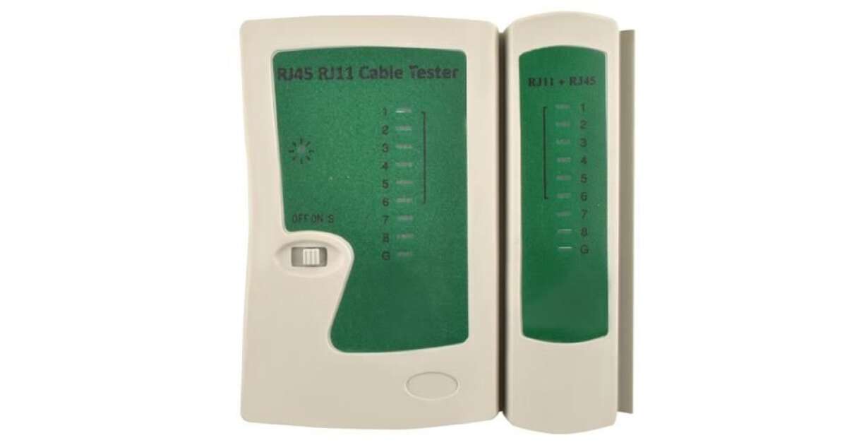 Hálózati kábel szerelő készlet praktikus cipzáros tokban, digitális kábeltesztelővel, 10 db RJ45 dugóval, 2 db csavarhúzóval leírása