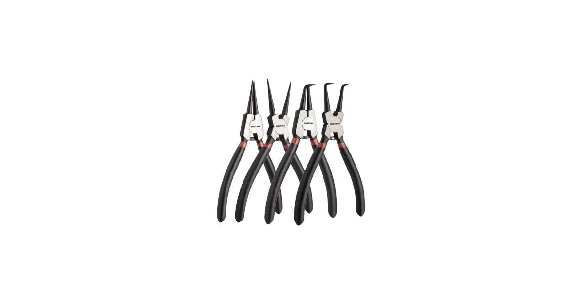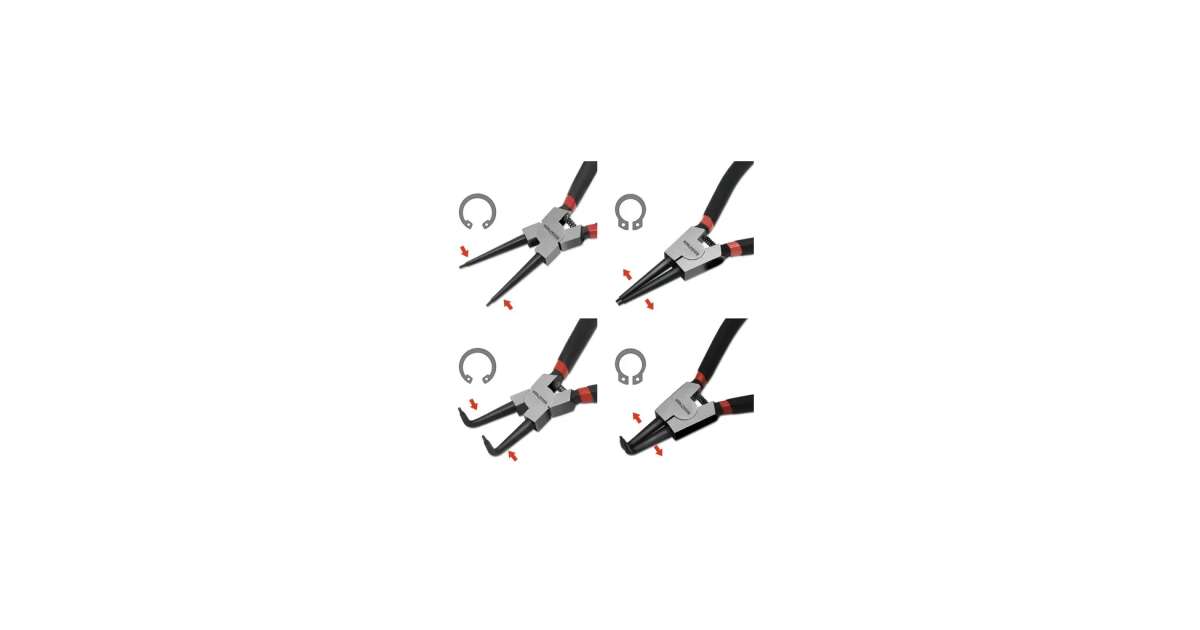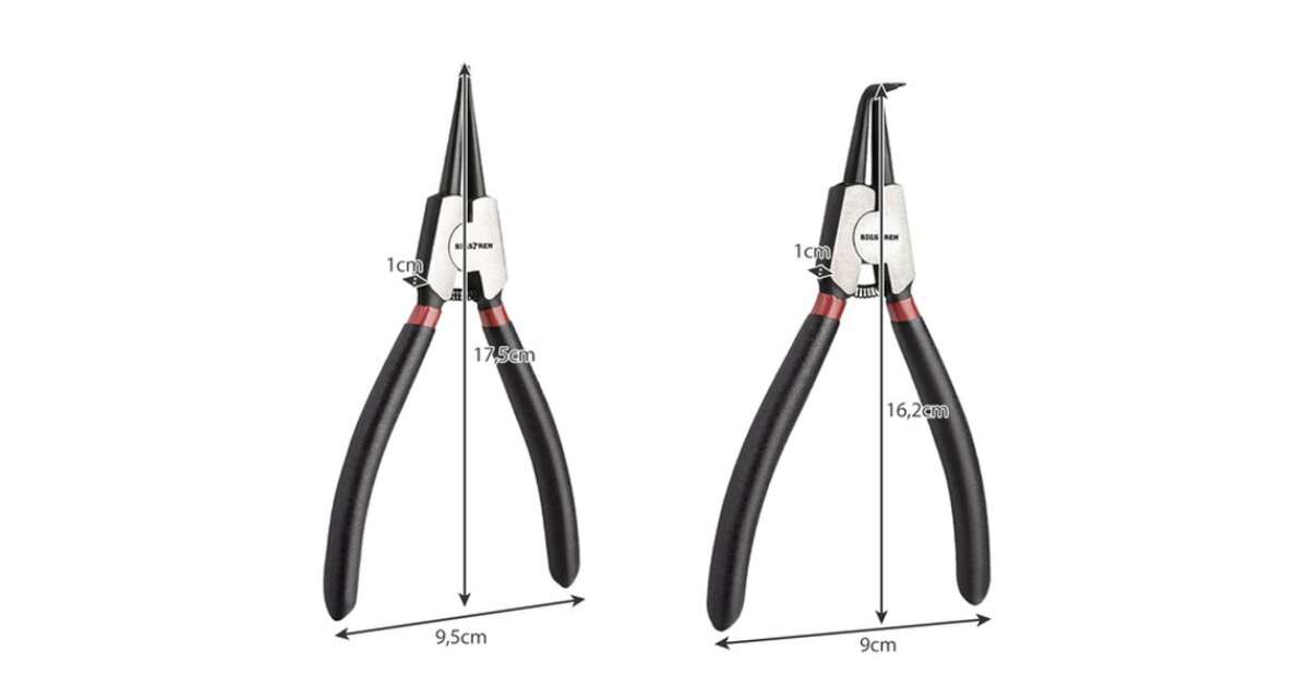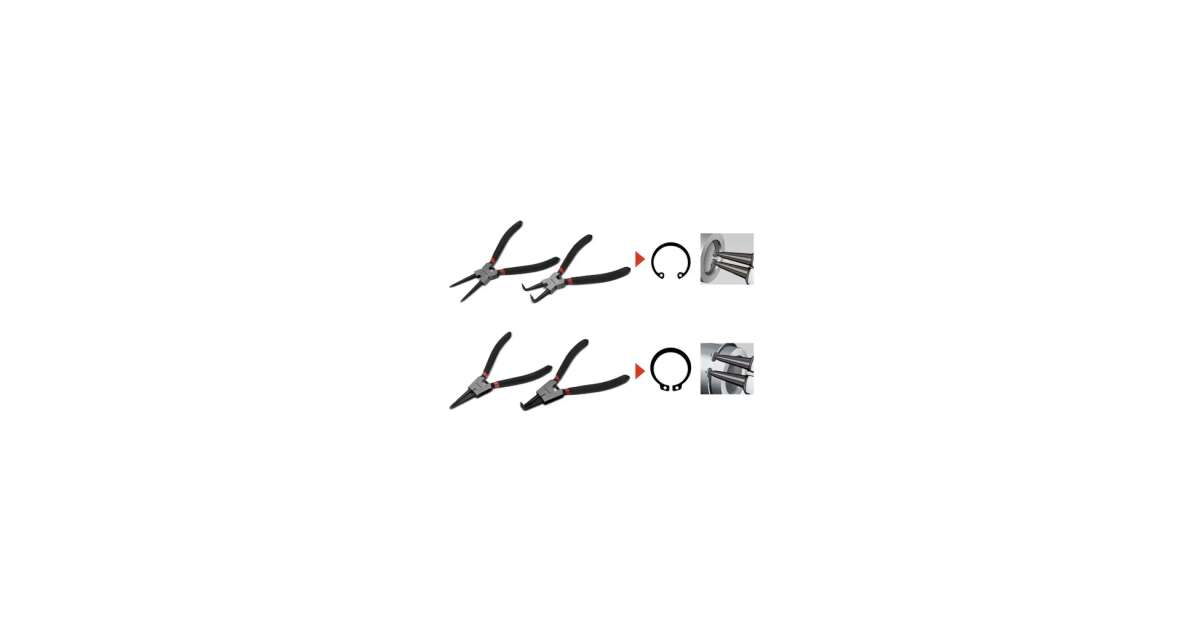 Ez a Bigstren 4 db-os gyűrűfogó készlet minden szükséges eszközt tartalmaz a különböző méretű és típusú biztosítógyűrűk egyszerű és hatékony szereléséhez és szétszereléséhez. A készletben 2 egyenes és 2 hajlított fogó található, hogy minden helyzetben a megfelelő eszközt használhassa.
