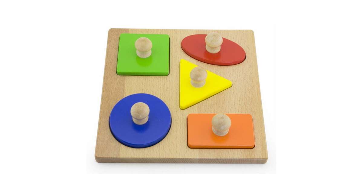 - 5 színes fa forma (kör, négyzet, háromszög, téglalap, ovális)