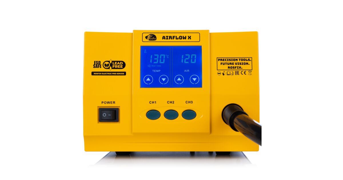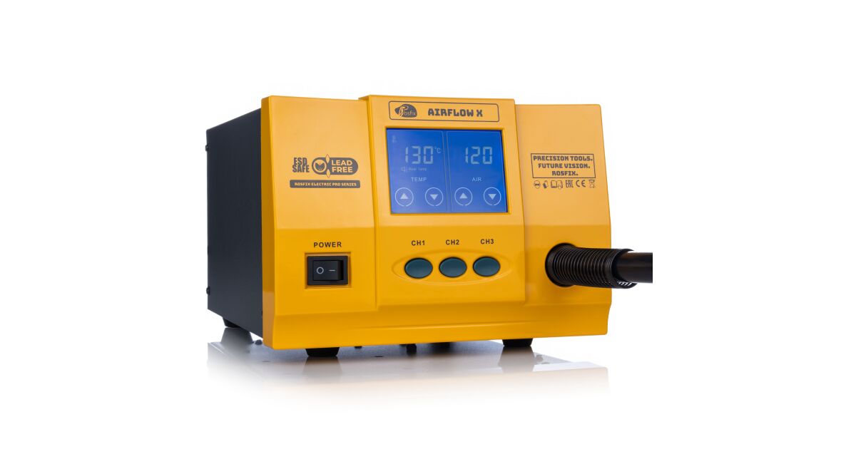AirFlow X Rosfix 1300W Érintőképernyős LCD TurboPro - SMD Forrasztóállomás | 3 Csatorna | Érintőképernyő | Kefe nélküli turbina | Automatikus alvó üzemmód | Ólommentes