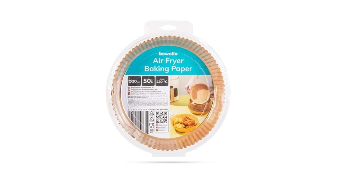 Ez a Bewello sütőpapír tökéletes megoldás airfryerhez, elektromos sütőhöz, mikrohullámú sütőhöz és párolóhoz is! A 20 cm átmérőjű, kör alakú papírok megakadályozzák az étel odakapását és odaégését, így könnyebben tisztítható a sütőkosár, és az étel is finomabb lesz. A 50 darabos csomag gazdaságos megoldást kínál a mindennapi sütéshez.