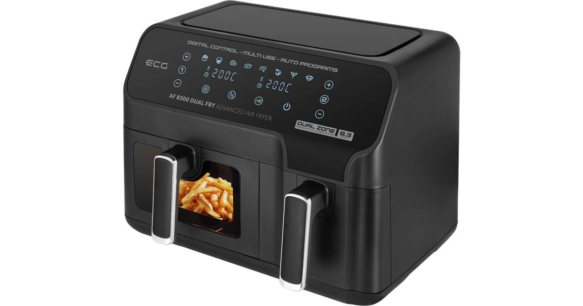 Ezt a terméket így is ismerheted: Dupla sütő forró levegővel EKG AF 8300 Dual Fry- 5-2 + 3-1 liter- 2700 W- 8 program- hőmérséklet szabályozás 80-200°C