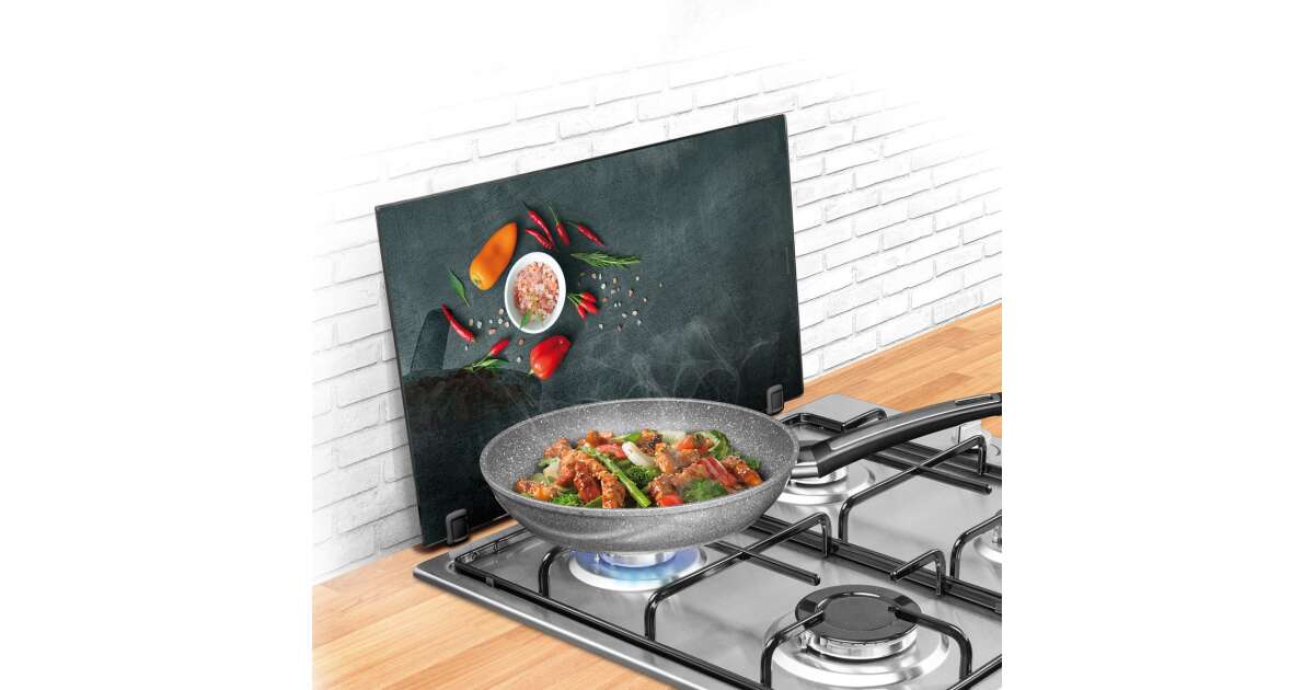 Ez az elegáns és praktikus üveg tűzhelyvédő lap kibővíti a konyhai munkafelületet, miközben megvédi a főzőlapot a fröccsenésektől és a karcolásoktól. Ideális helyet biztosít a fűszerek, edények és egyéb konyhai kellékek elhelyezésére.