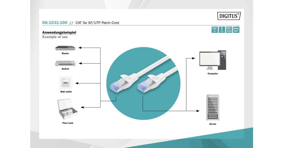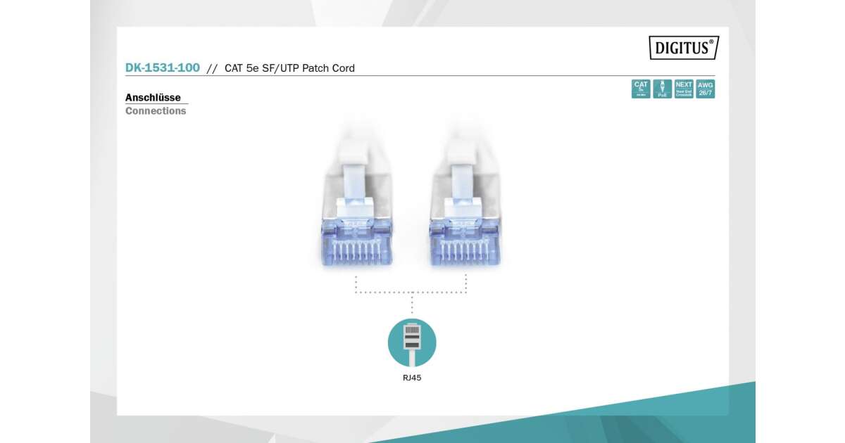 - 1:1 kábelezés TIA/EIA 568B szerint: megbízható és szabványos csatlakozás