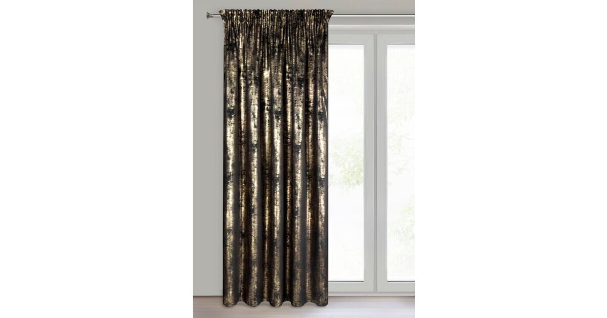 Az Eurofirany Renia függöny egy elegáns és kifinomult választás, amely azonnal feldobja otthonod hangulatát. A fekete-arany bársony dizájn luxus érzetet kölcsönöz bármely helyiségnek.