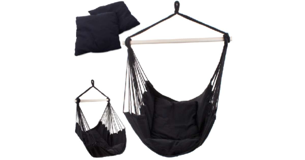 Ez a fekete függőszék tökéletes helyet teremt a relaxációra, akár a kertben, a teraszon, vagy a lakásban. Kényelmesen olvashatsz benne, pihenhetsz, vagy a gyerekek is használhatják tanulásra. Könnyen összehajtható és hordozható, így magaddal viheted bárhová! ✈️