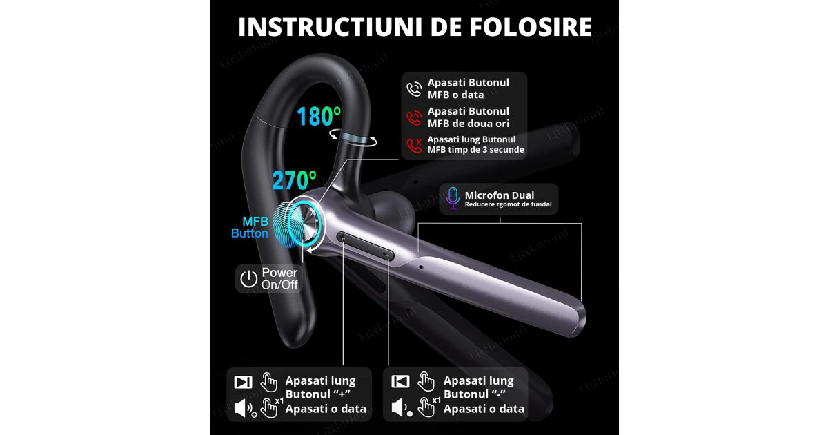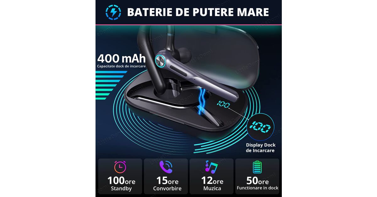 Professzionális Bluetooth 5.2 fejhallgató, kihangosító, zajszűrés, hangerő- és zeneszabályozás, 2 mikrofon, némítás funkció, Android és iOS kompatibilis, 400 mAh töltődoboz, 15 óra üzemidő, 7 leírása