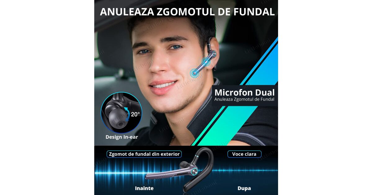 Professzionális Bluetooth 5.2 fejhallgató, kihangosító, zajszűrés, hangerő- és zeneszabályozás, 2 mikrofon, némítás funkció, Android és iOS kompatibilis, 400 mAh töltődoboz, 15 óra üzemidő, 7