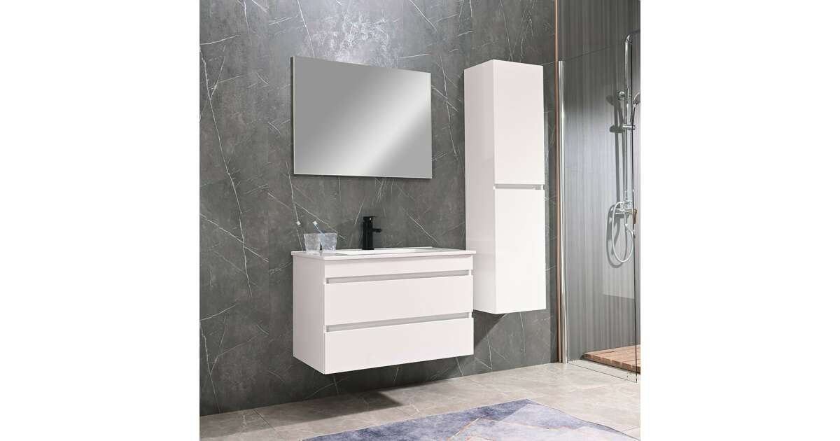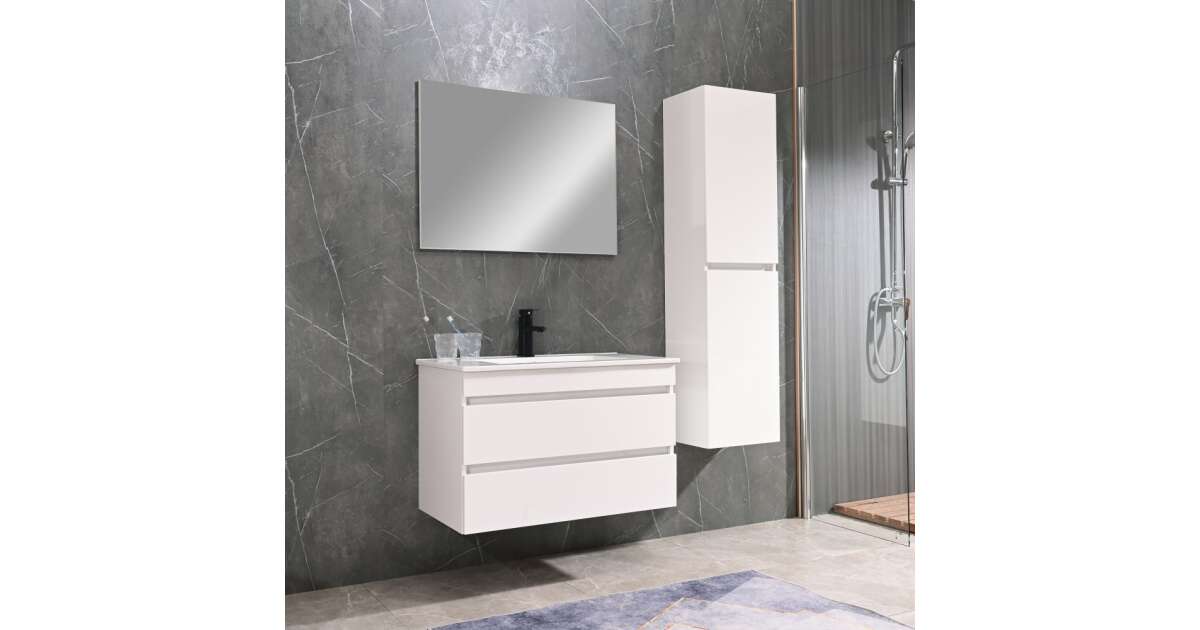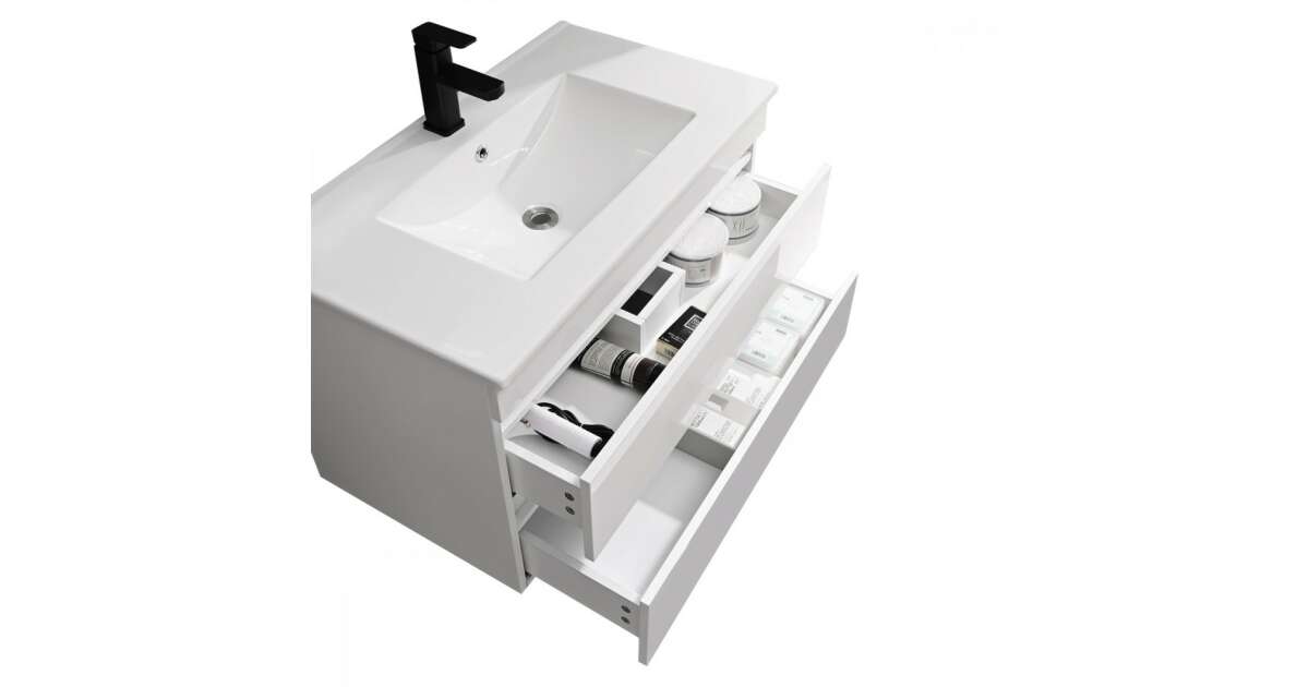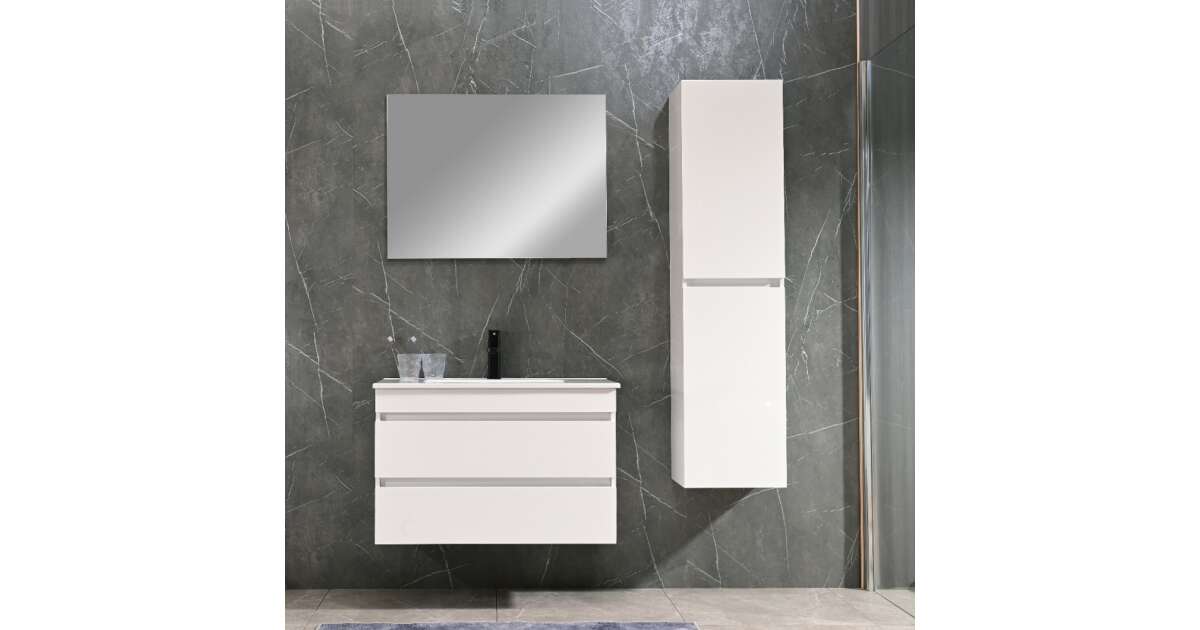 Ezt a terméket így is ismerheted: Leziter CUBE80A Cube 80 alsó fürdőszobabútor kerámia mosdóval 2 fiókos, magasfényű festett fehér