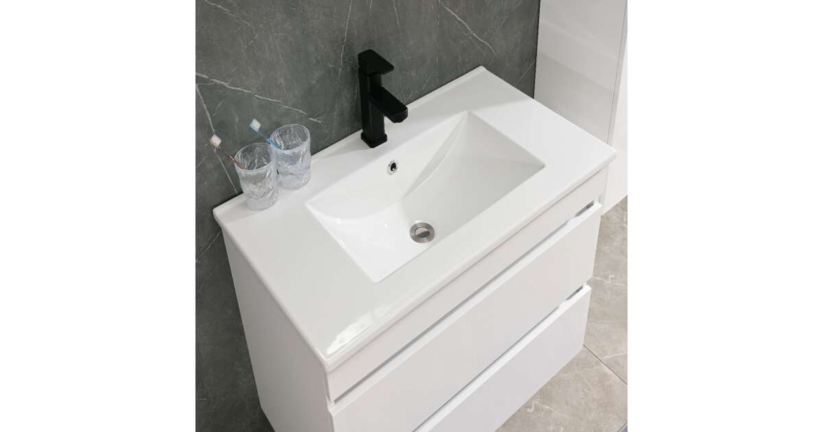 Leziter CUBE80A Cube 80 alsó fürdőszobabútor kerámia mosdóval 2 fiókos, magasfényű festett fehér vásárlás: