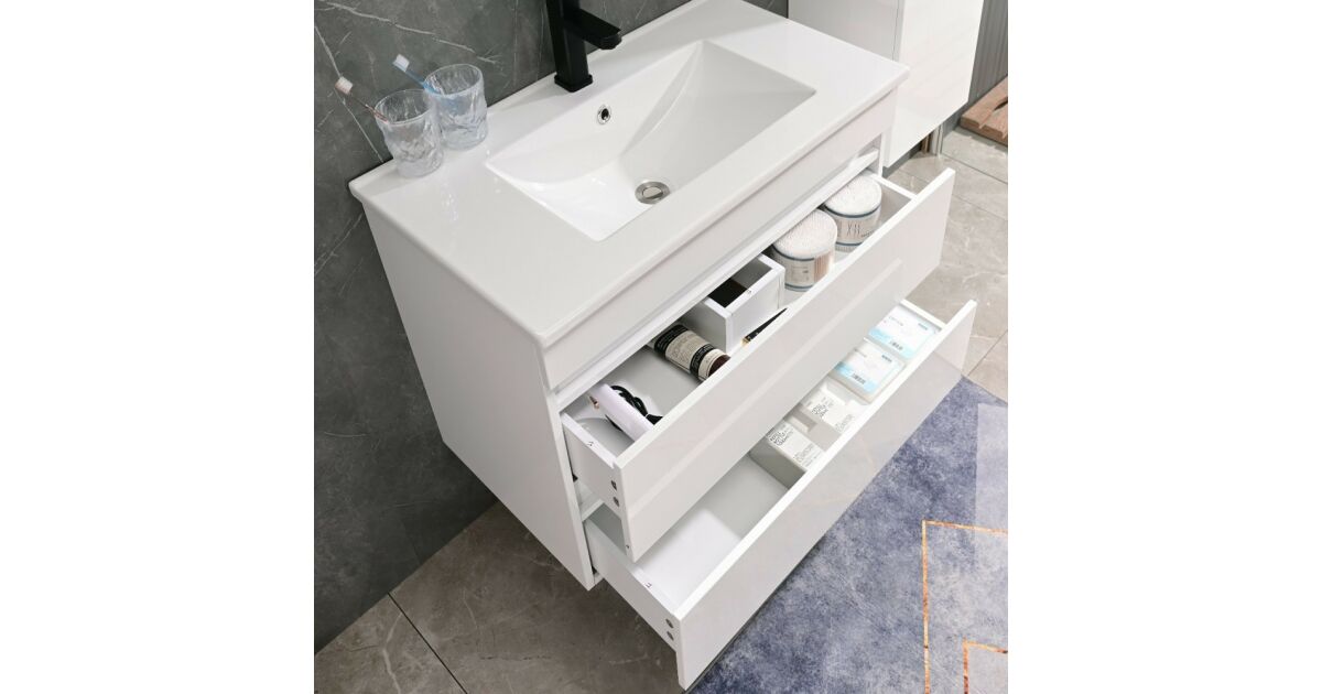 Ez a stílusos és helytakarékos fürdőszobabútor tökéletes választás kisebb fürdőszobákba is. A Cube 80-as modell két tágas fiókkal rendelkezik, amikben kényelmesen elhelyezheted a fürdőszobai kellékeidet. A magasfényű fehér felület elegáns megjelenést kölcsönöz a fürdőszobádnak.