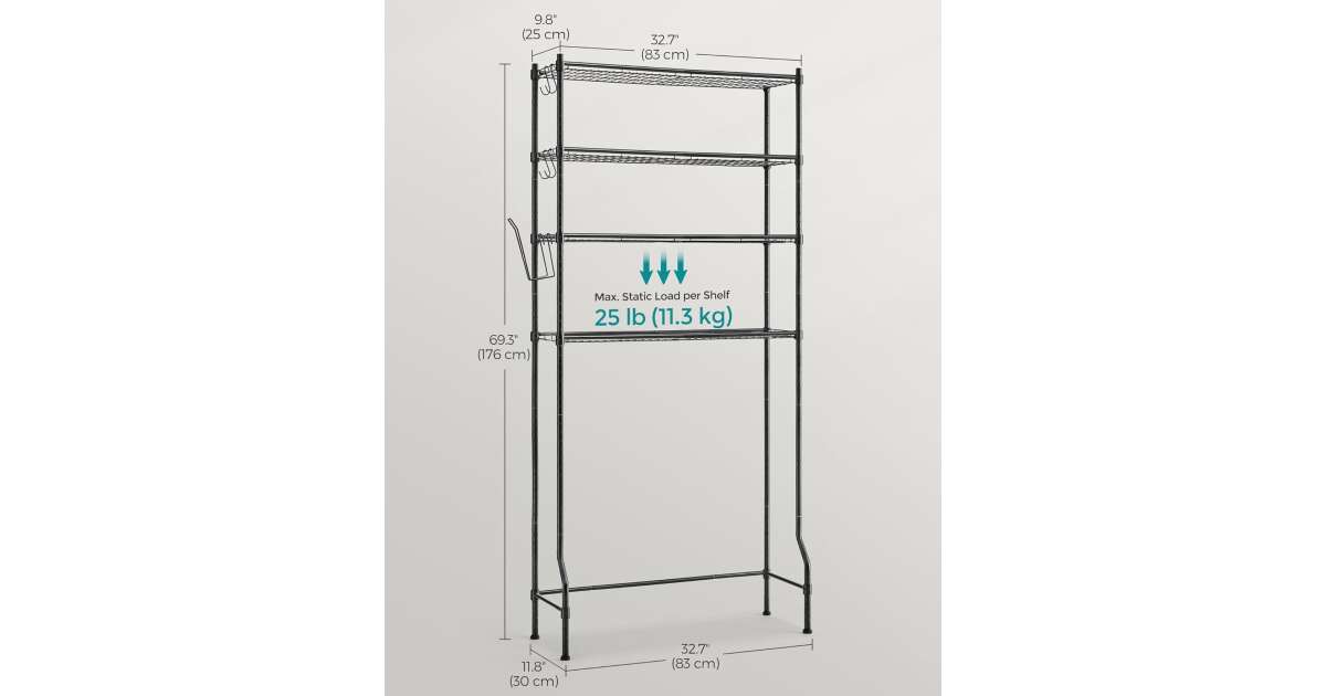 Ezt a terméket így is ismerheted: SONGMICS fürdőszobai tárolópolc, a mosógépre vagy a wc csészére átlapolva, 30x83x176 cm, fekete