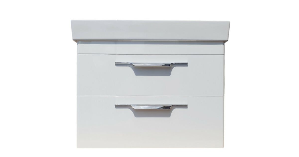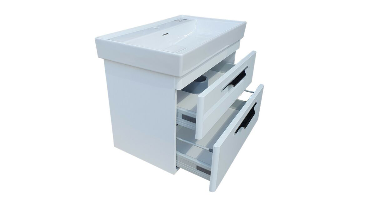 - Anyag: Magasfényű fehér bútor, kerámia mosdó