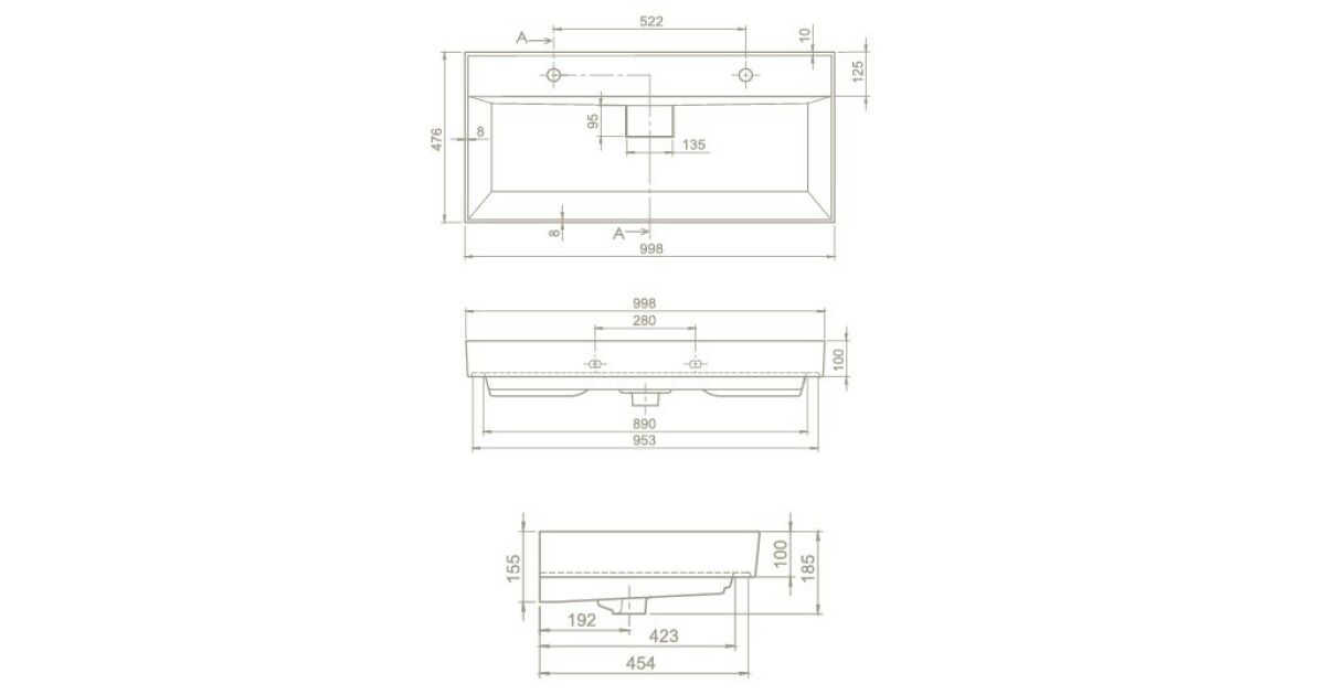 Ezt a terméket így is ismerheted: TMP LUX 100D fali fürdőszobabútor - CeraStyle SHARP FEKETE DUPLA csaplyukas mosdóval - 100 x 48 cm